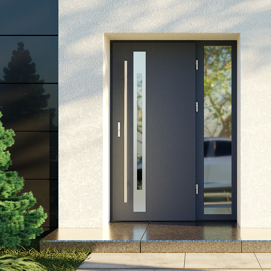 Czarne drzwi, oraz okna w odcieniach czerni tworzą jednolitą, nowoczesną kompozycję z grafitowym pokryciem dachowym. To rozwiązanie często wybierane przez architektów, wówczas kiedy, zależy im na osiągnięciu w projekcie monolitu kolorystycznego i silnego akcentu w projekcie. Czarna stolarka to wybór dla tych, którzy cenią konsekwencję, prostotę i siłę zaklętą w ciemnej palecie kolorystycznej.