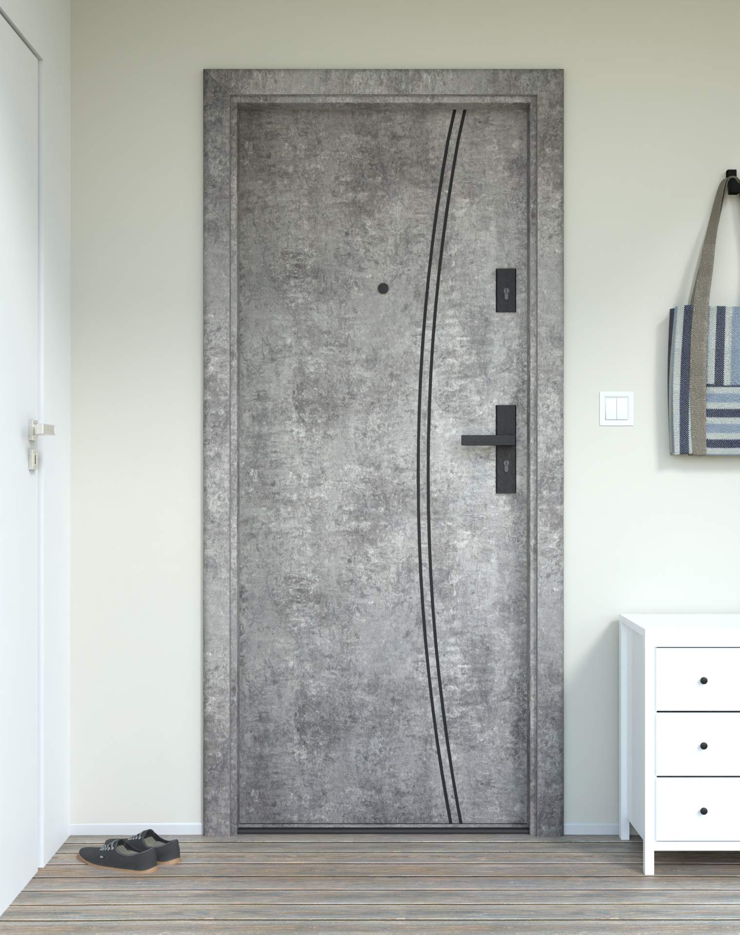 Drzwi z kolekcji Bastion Alu wyróżniają się nowoczesnym wzornictwem uzupełnionym o aluminiowe intarsje w kolorze Inox (srebrnym), rozmieszczone pionowo lub poziomo w zależności od modelu. Wstawki mogą być smukłe lub pogrubione, rozmieszczone pionowo bądź poziomo, tworząc elegancki kontrast z powierzchnią skrzydła, która może być gładka lub wzbogacona frezowaniem. Solidna konstrukcja z płytą dźwiękochłonną lub panelem wyciszającym gwarantuje trwałość i bardzo dobrą izolację akustyczną.