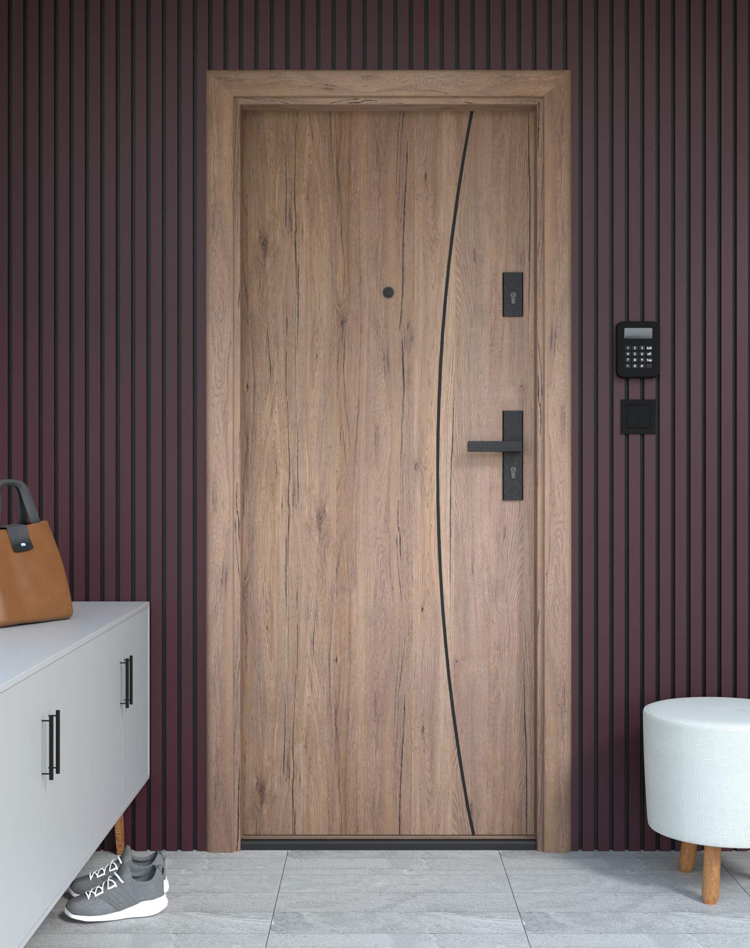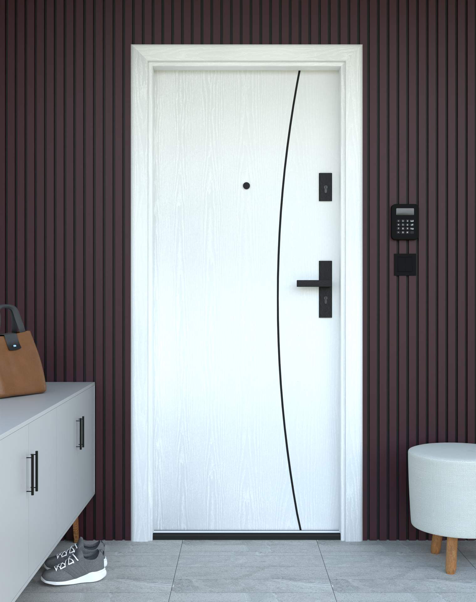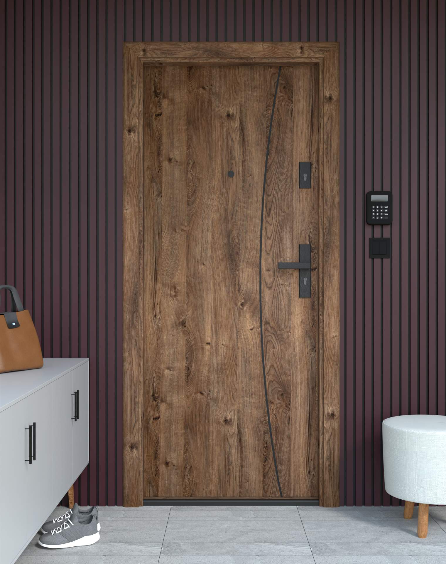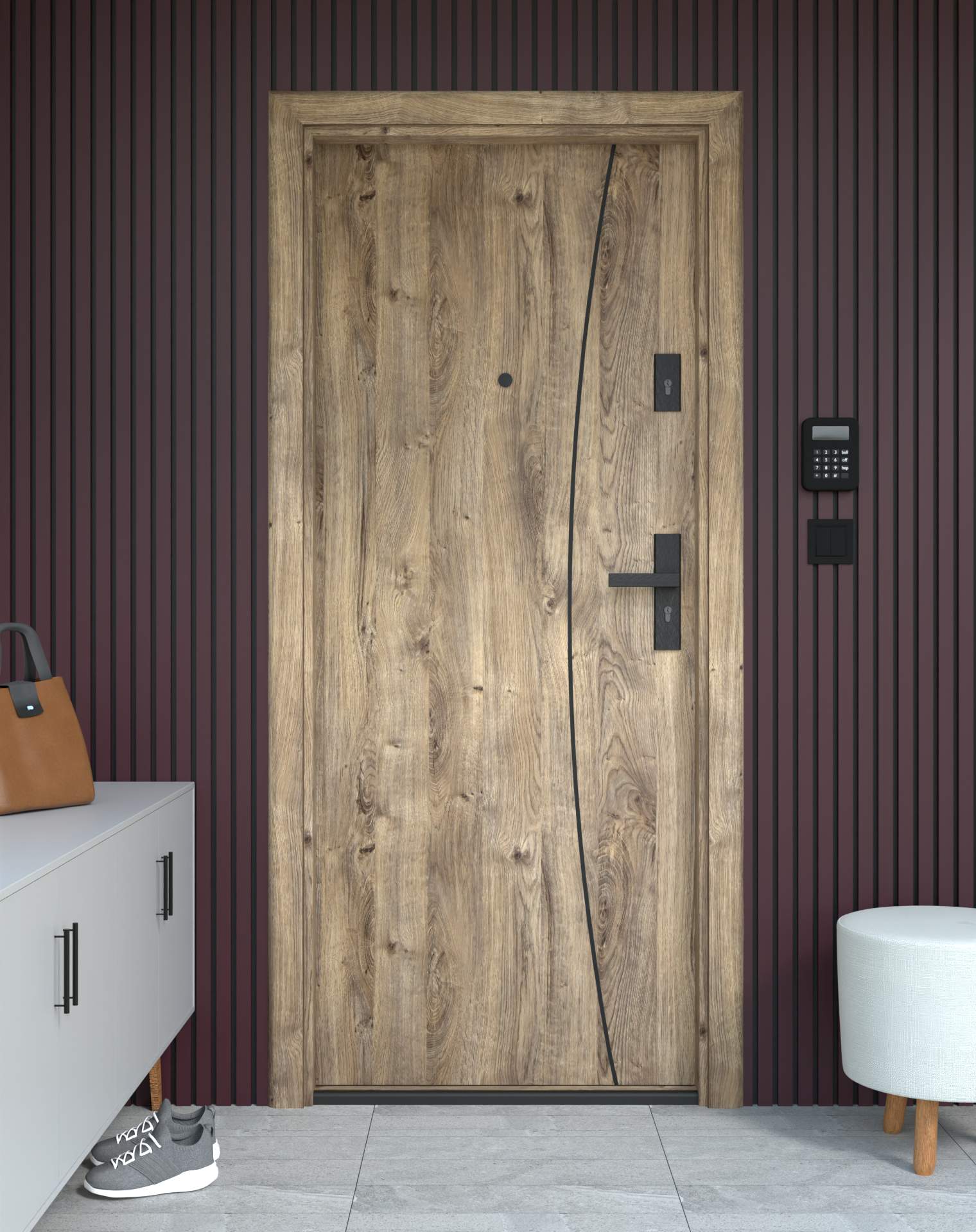 Drzwi z kolekcji Bastion Alu wyróżniają się nowoczesnym wzornictwem uzupełnionym o aluminiowe intarsje w kolorze Inox (srebrnym), rozmieszczone pionowo lub poziomo w zależności od modelu. Wstawki mogą być smukłe lub pogrubione, rozmieszczone pionowo bądź poziomo, tworząc elegancki kontrast z powierzchnią skrzydła, która może być gładka lub wzbogacona frezowaniem. Solidna konstrukcja z płytą dźwiękochłonną lub panelem wyciszającym gwarantuje trwałość i bardzo dobrą izolację akustyczną.