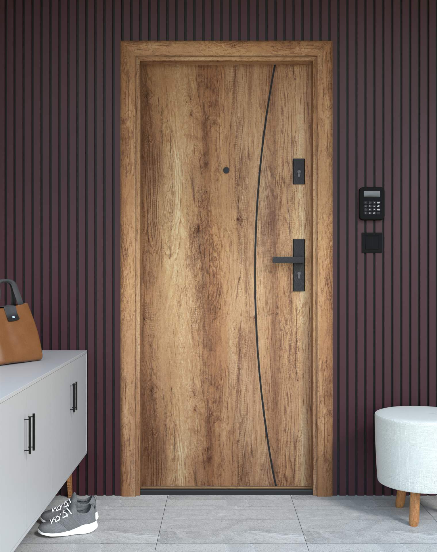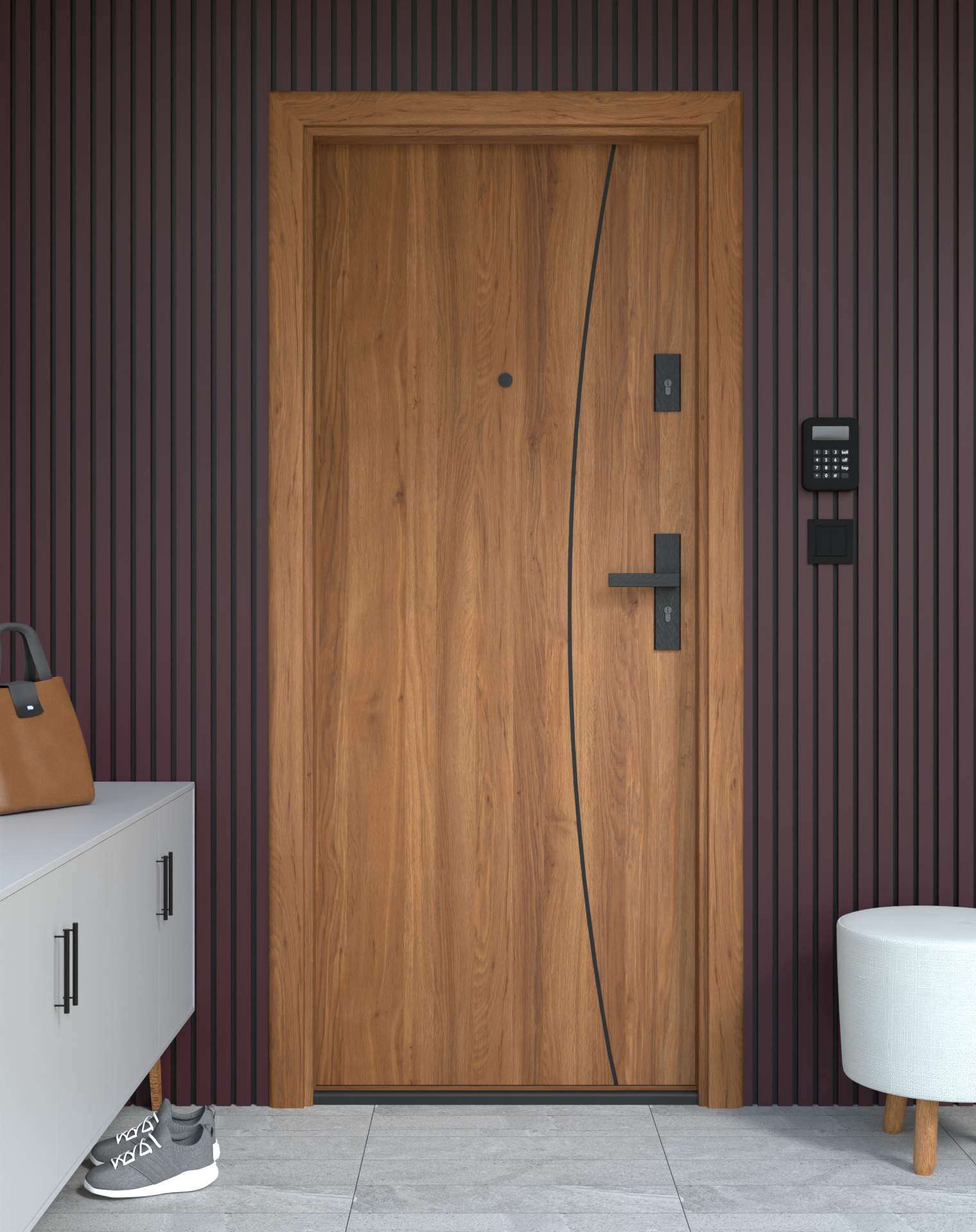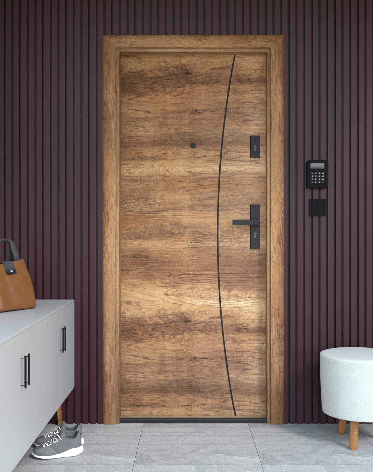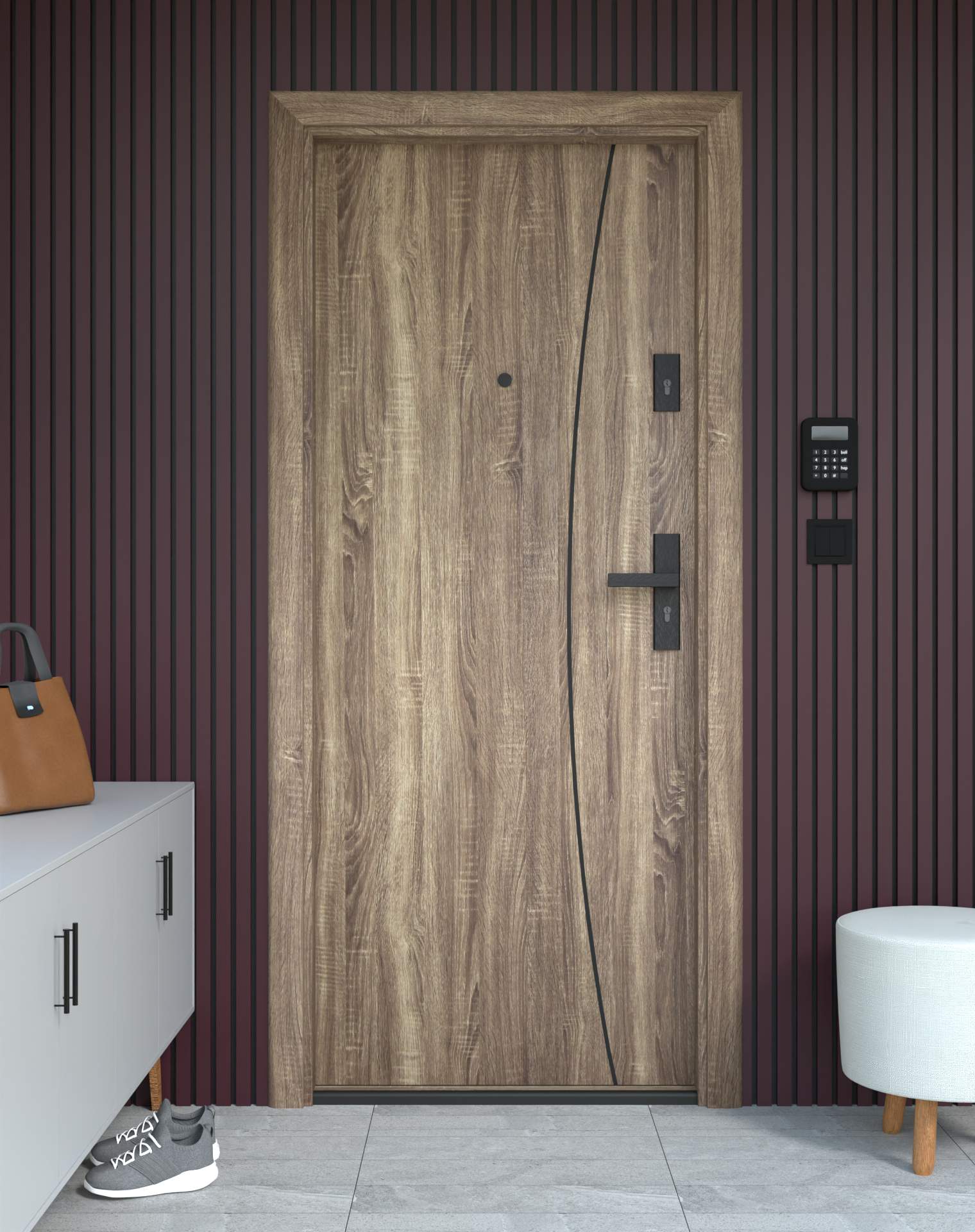 Drzwi z kolekcji Bastion Alu wyróżniają się nowoczesnym wzornictwem uzupełnionym o aluminiowe intarsje w kolorze Inox (srebrnym), rozmieszczone pionowo lub poziomo w zależności od modelu. Wstawki mogą być smukłe lub pogrubione, rozmieszczone pionowo bądź poziomo, tworząc elegancki kontrast z powierzchnią skrzydła, która może być gładka lub wzbogacona frezowaniem. Solidna konstrukcja z płytą dźwiękochłonną lub panelem wyciszającym gwarantuje trwałość i bardzo dobrą izolację akustyczną.