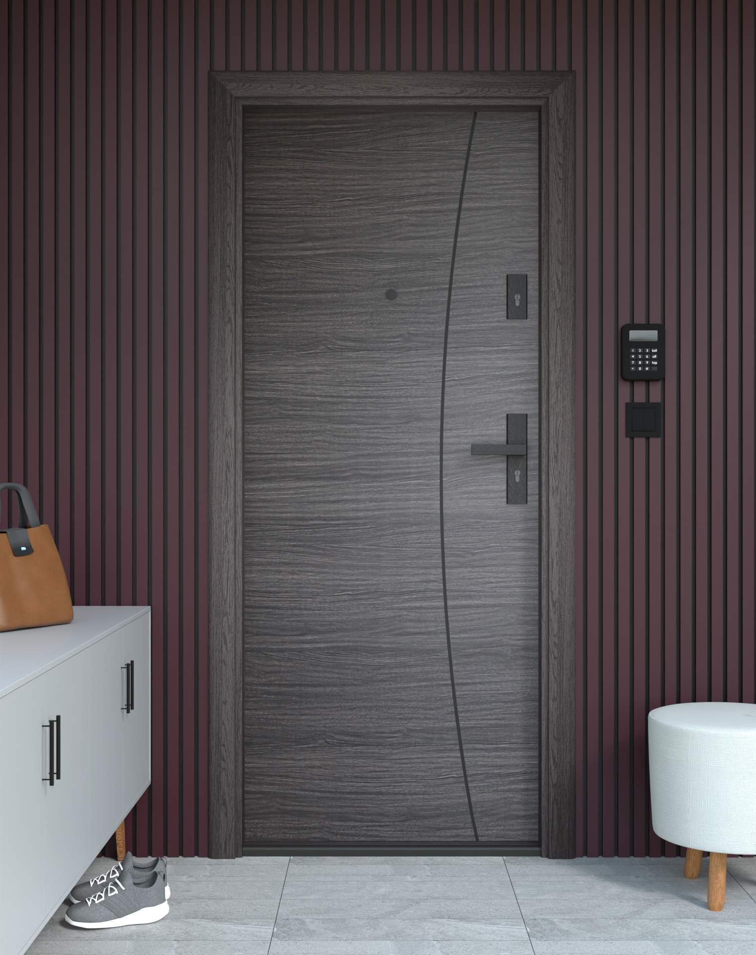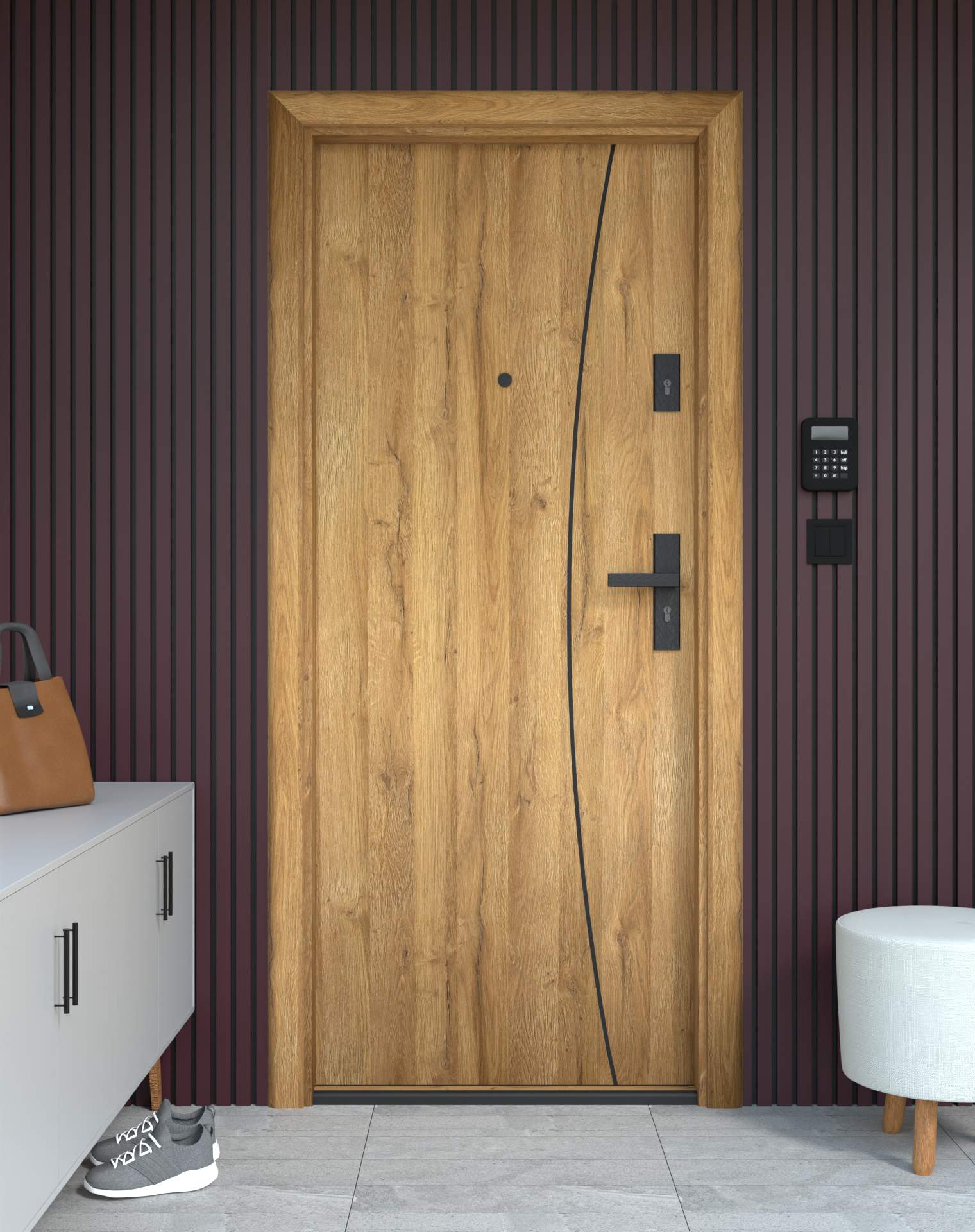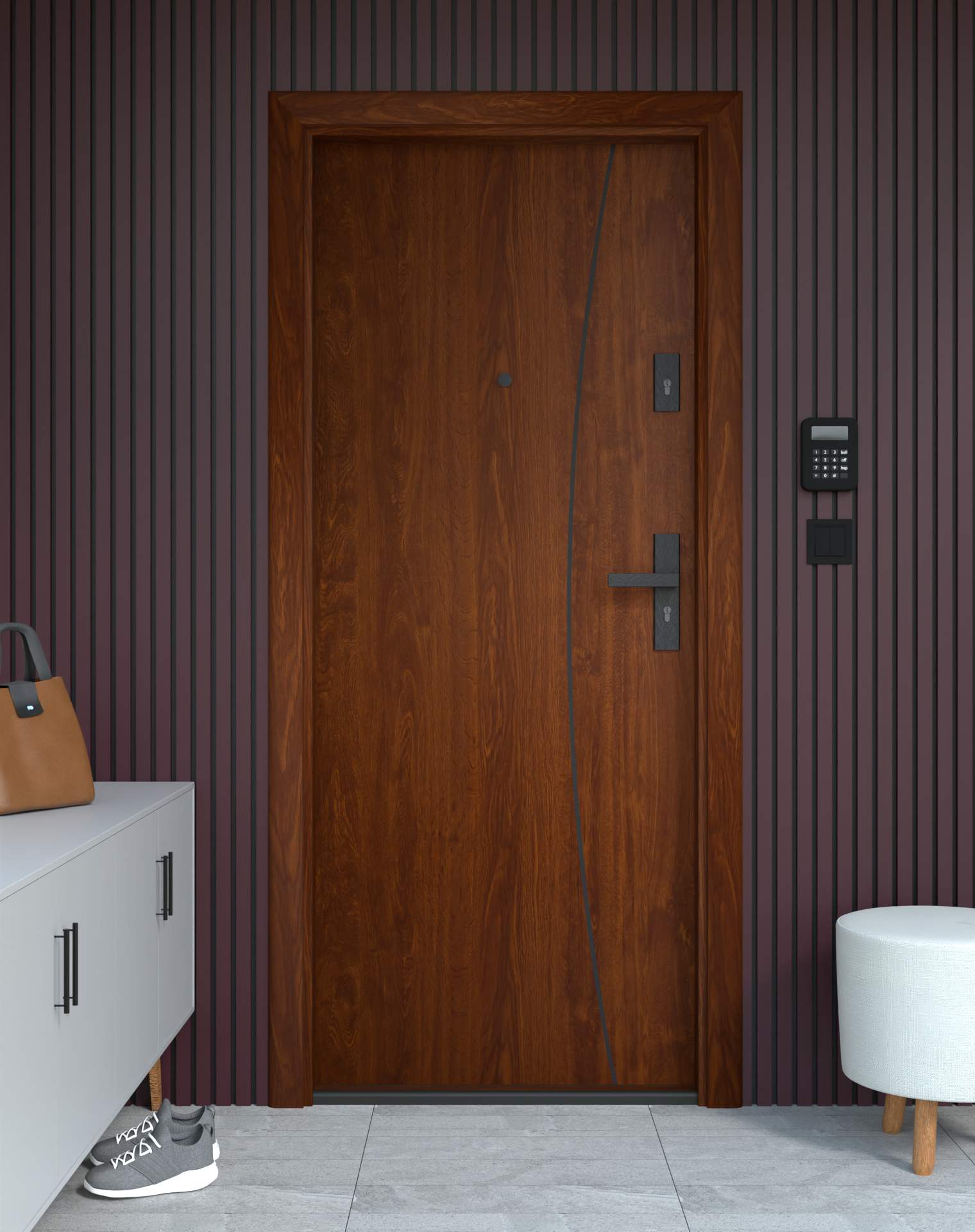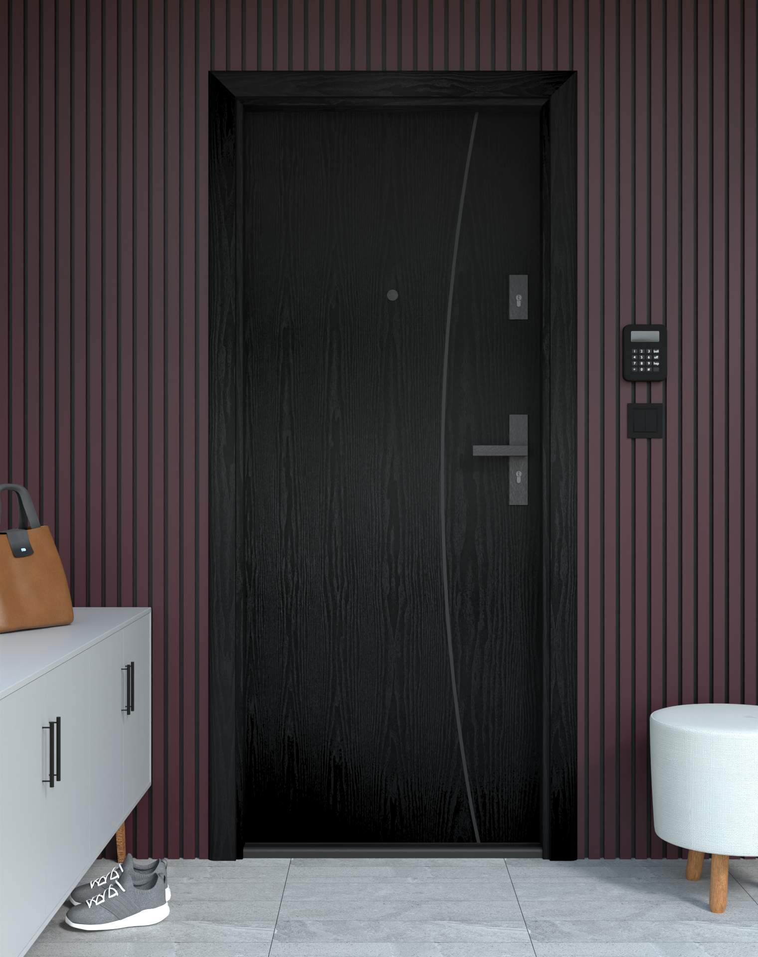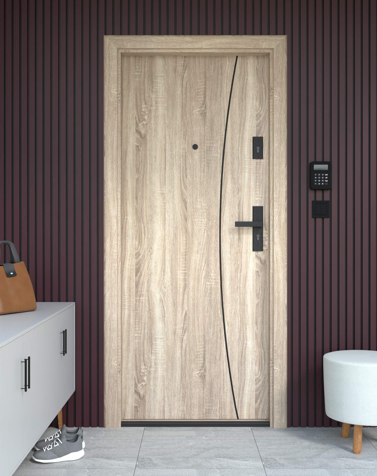 Drzwi z kolekcji Bastion Alu wyróżniają się nowoczesnym wzornictwem uzupełnionym o aluminiowe intarsje w kolorze Inox (srebrnym), rozmieszczone pionowo lub poziomo w zależności od modelu. Wstawki mogą być smukłe lub pogrubione, rozmieszczone pionowo bądź poziomo, tworząc elegancki kontrast z powierzchnią skrzydła, która może być gładka lub wzbogacona frezowaniem. Solidna konstrukcja z płytą dźwiękochłonną lub panelem wyciszającym gwarantuje trwałość i bardzo dobrą izolację akustyczną.