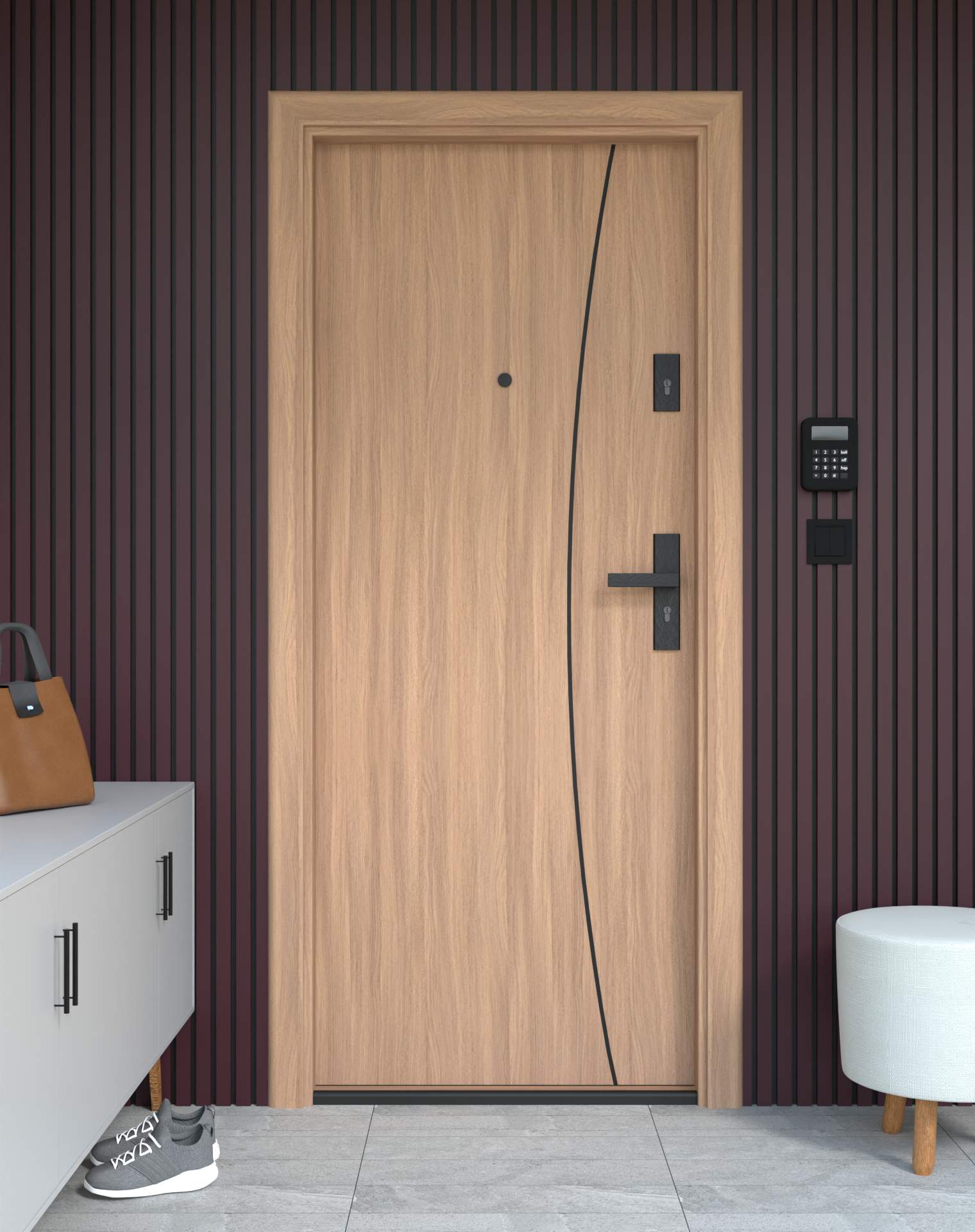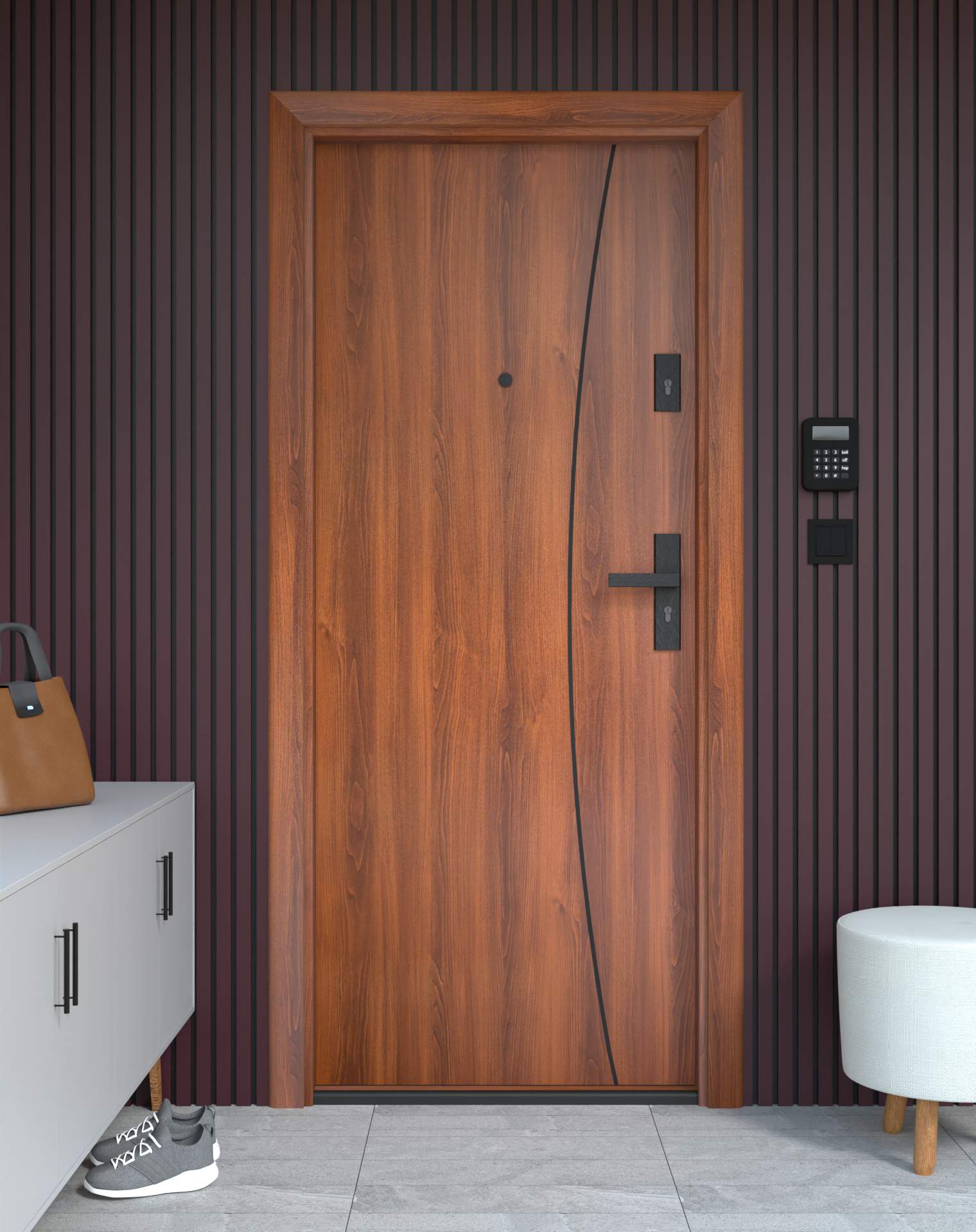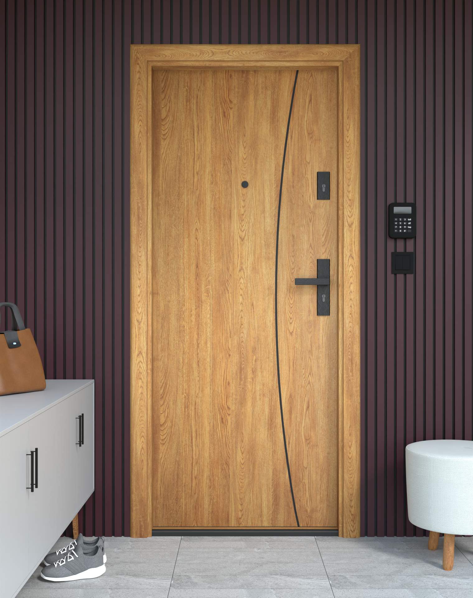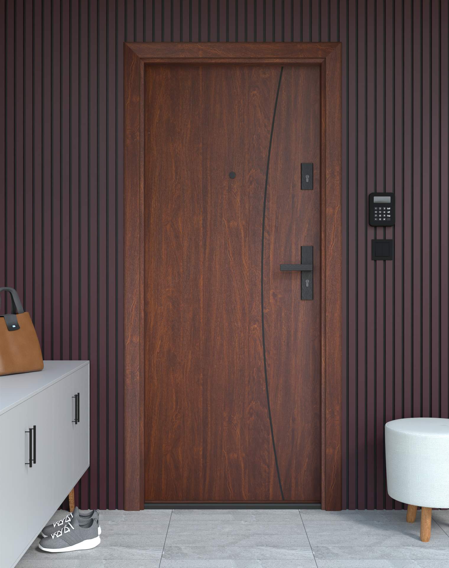 Drzwi z kolekcji Bastion Alu wyróżniają się nowoczesnym wzornictwem uzupełnionym o aluminiowe intarsje w kolorze Inox (srebrnym), rozmieszczone pionowo lub poziomo w zależności od modelu. Wstawki mogą być smukłe lub pogrubione, rozmieszczone pionowo bądź poziomo, tworząc elegancki kontrast z powierzchnią skrzydła, która może być gładka lub wzbogacona frezowaniem. Solidna konstrukcja z płytą dźwiękochłonną lub panelem wyciszającym gwarantuje trwałość i bardzo dobrą izolację akustyczną.