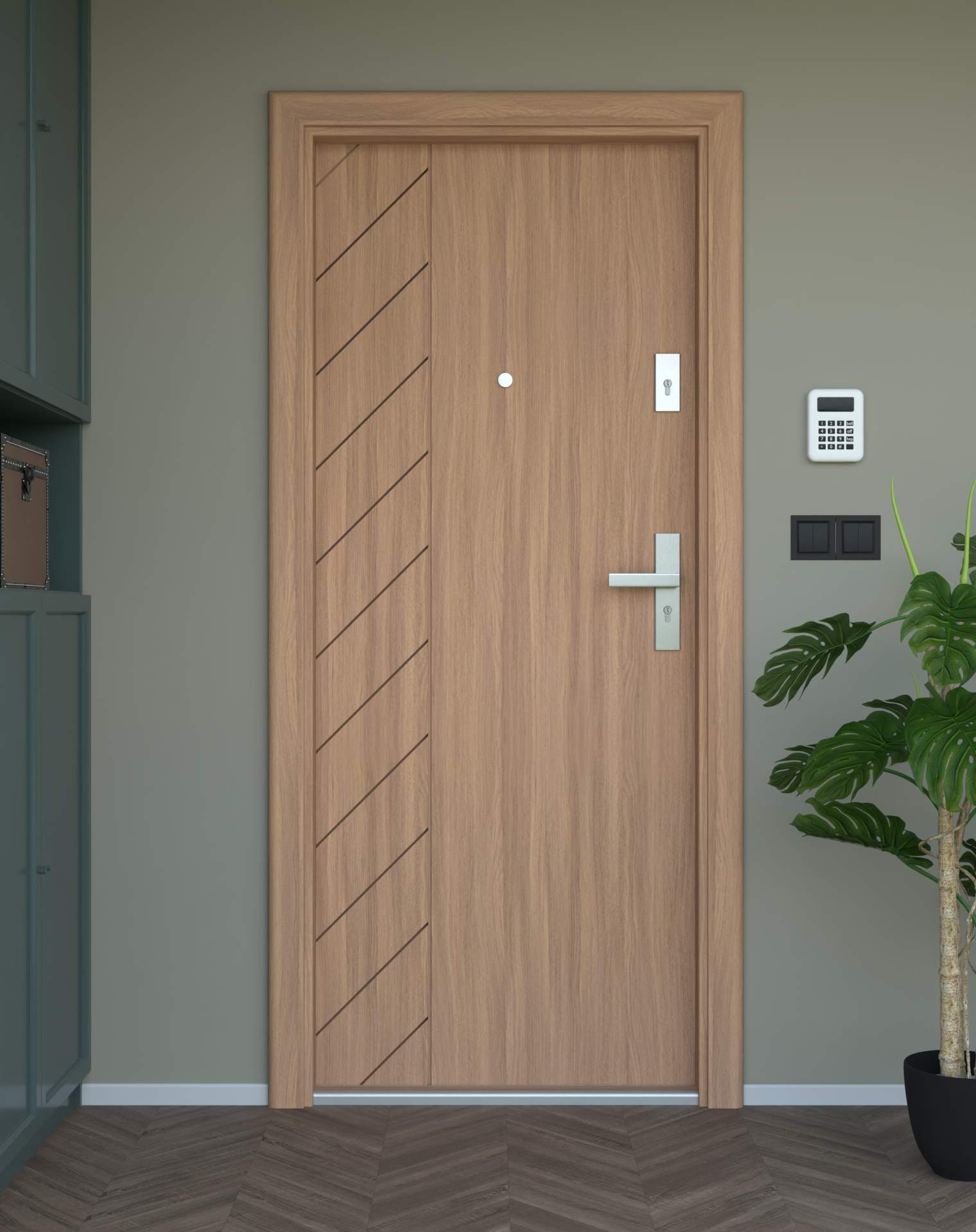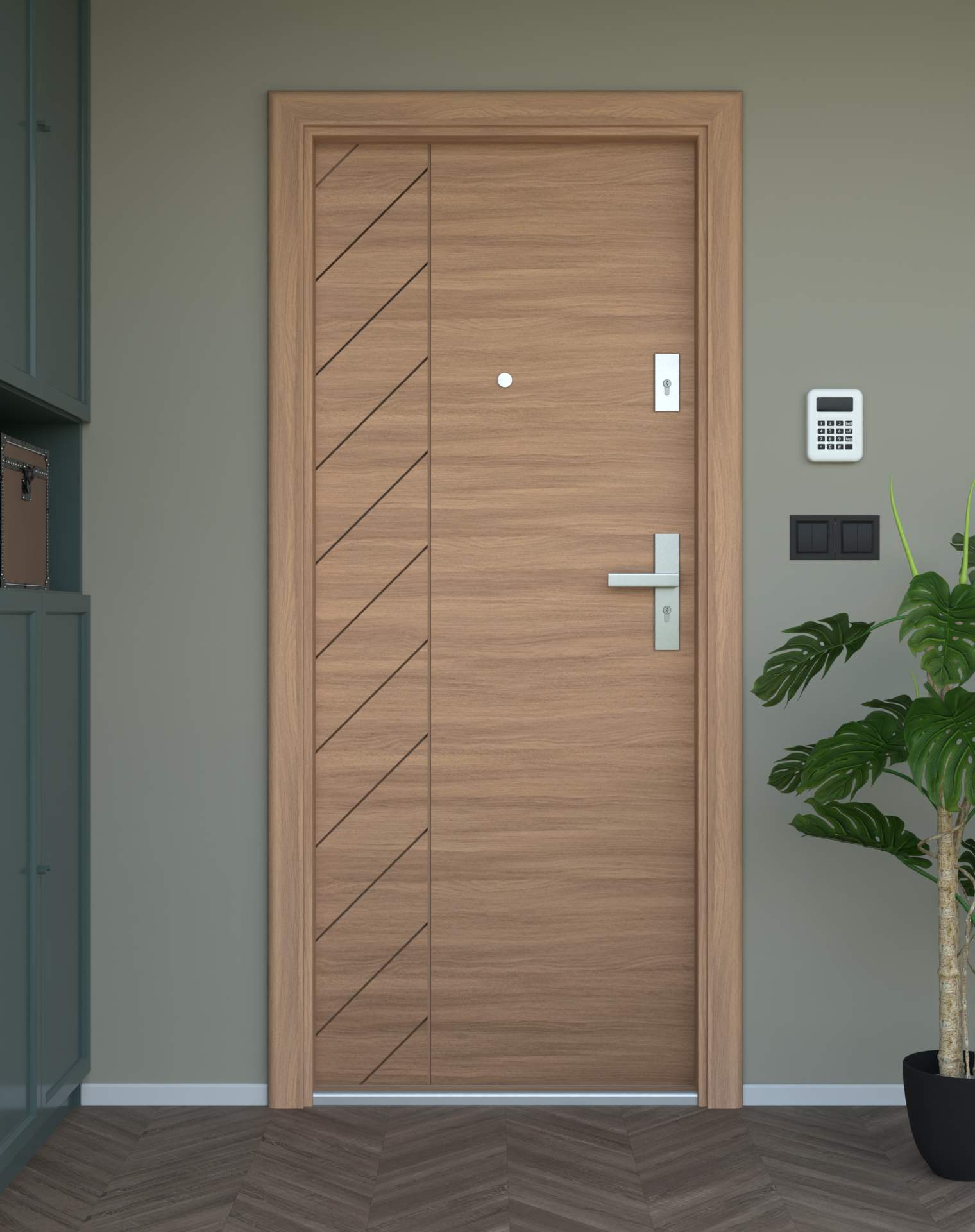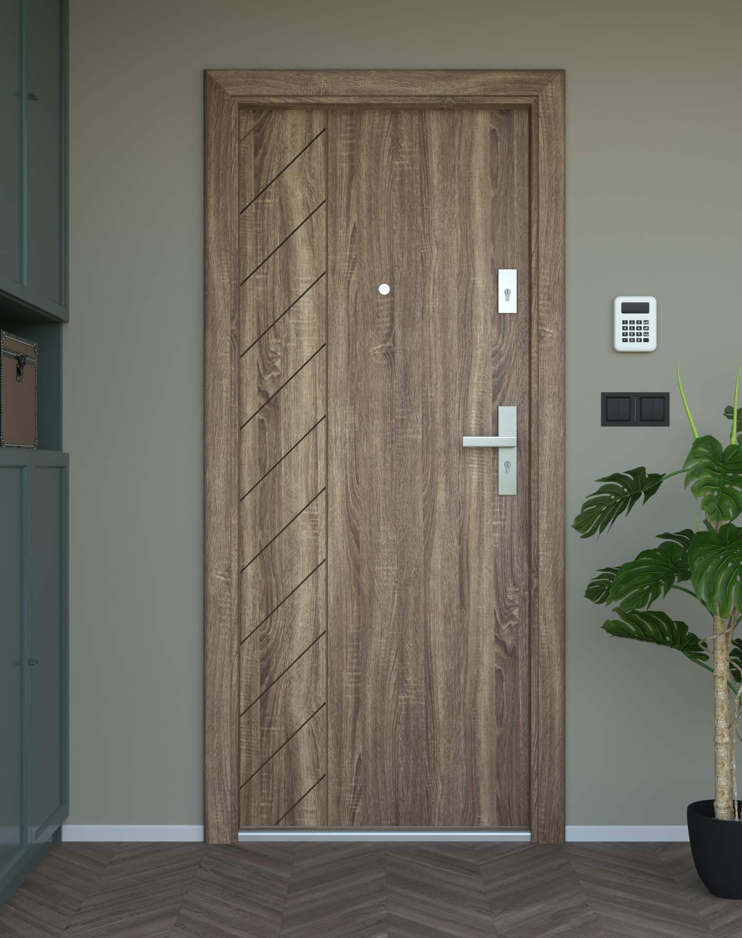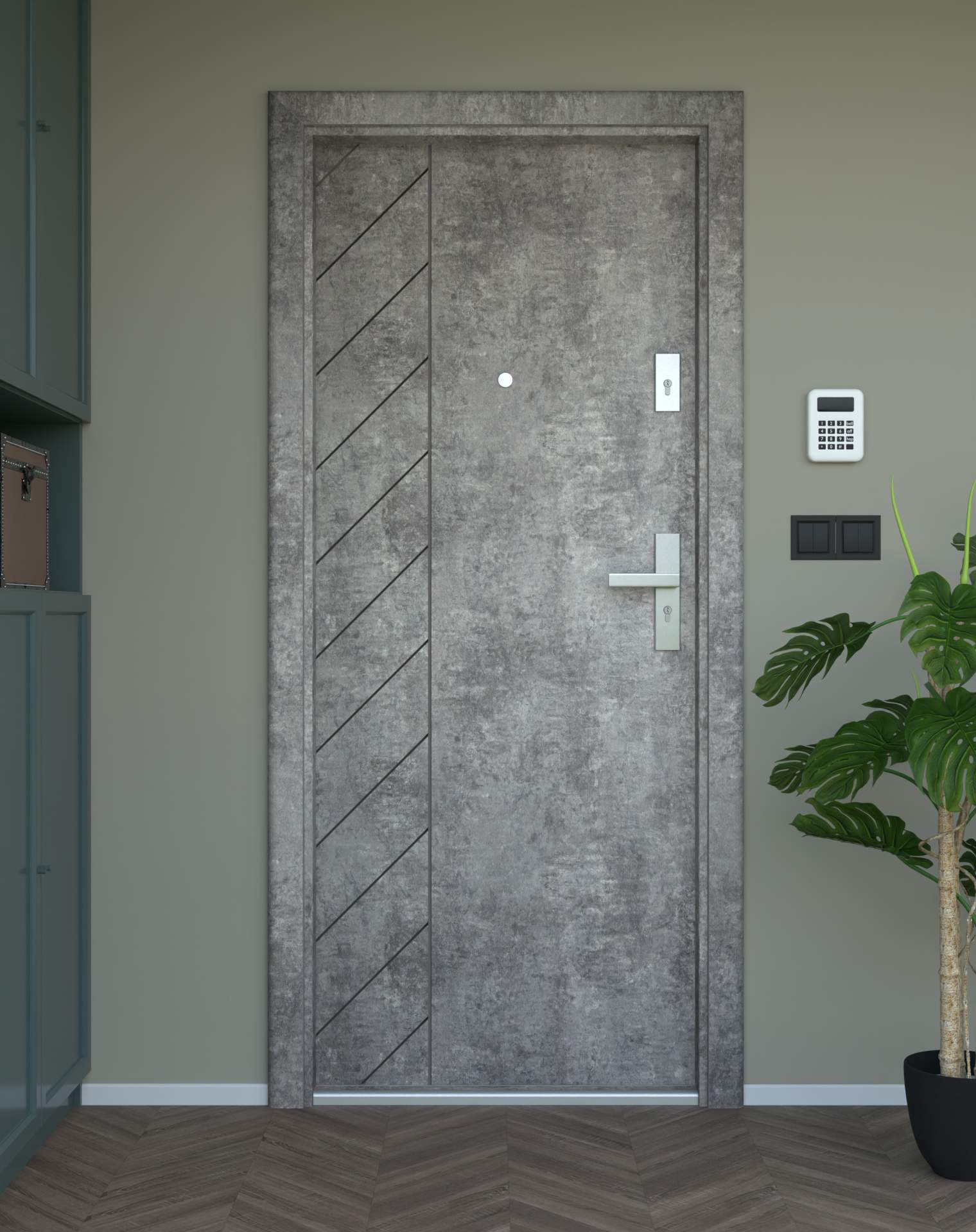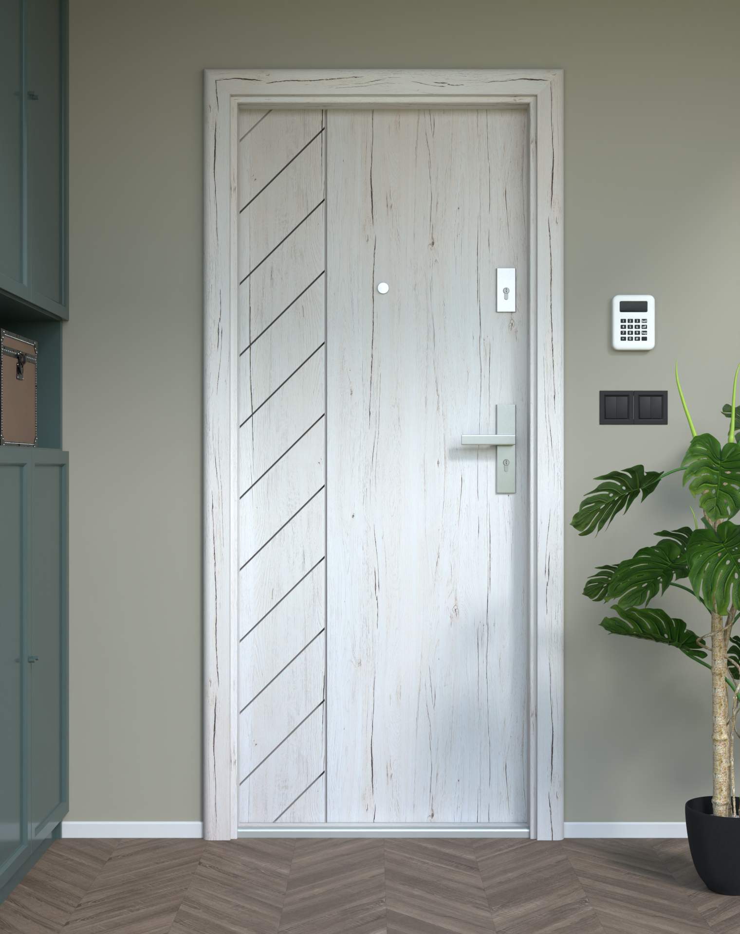 Okucia antywłamaniowe z anodowanego aluminium, odporne na zarysowania i próby włamania, zgodne z normą RC2. Komplet obejmuje rozwiązania konstrukcyjne zwiększające ochronę drzwi wejściowych.