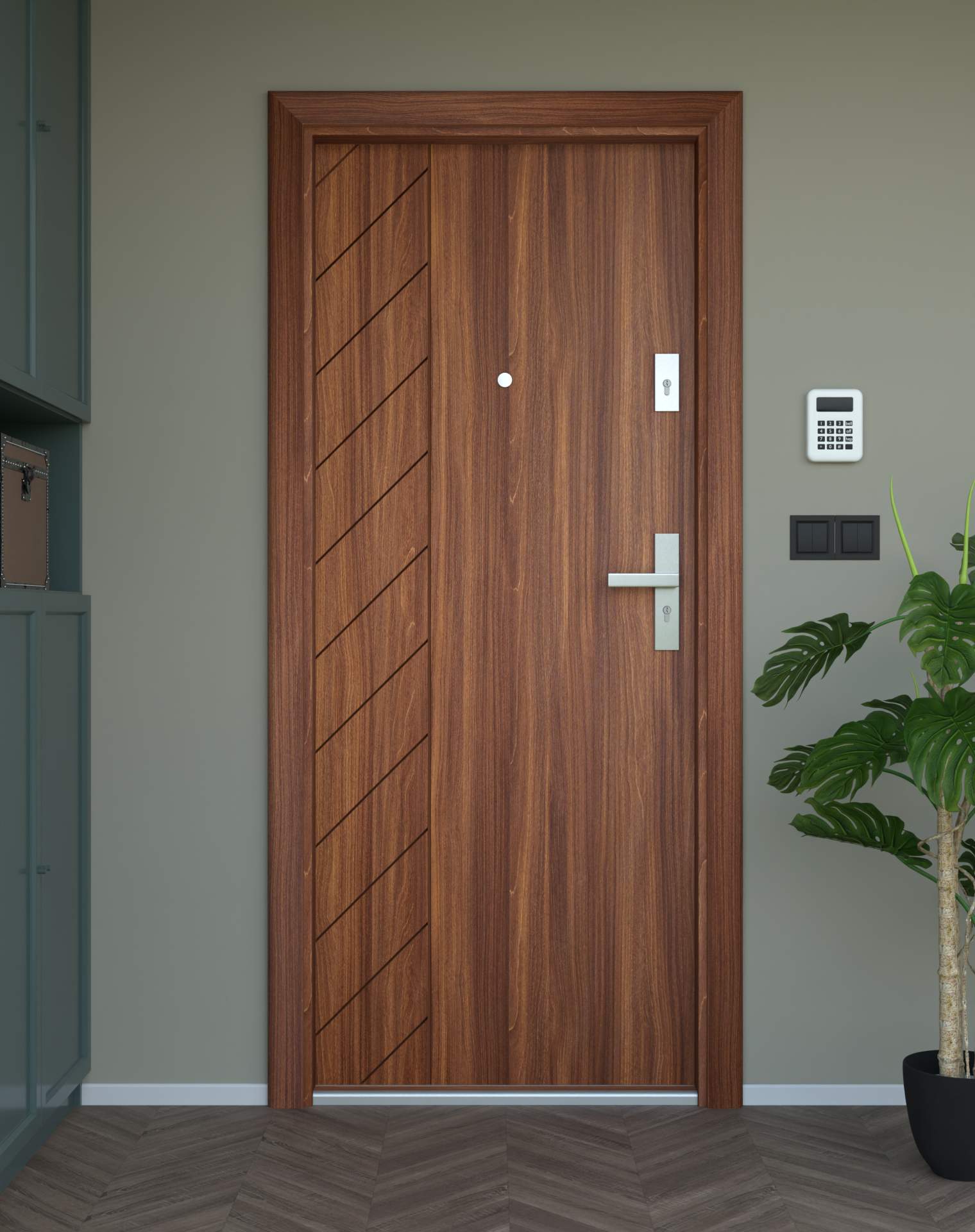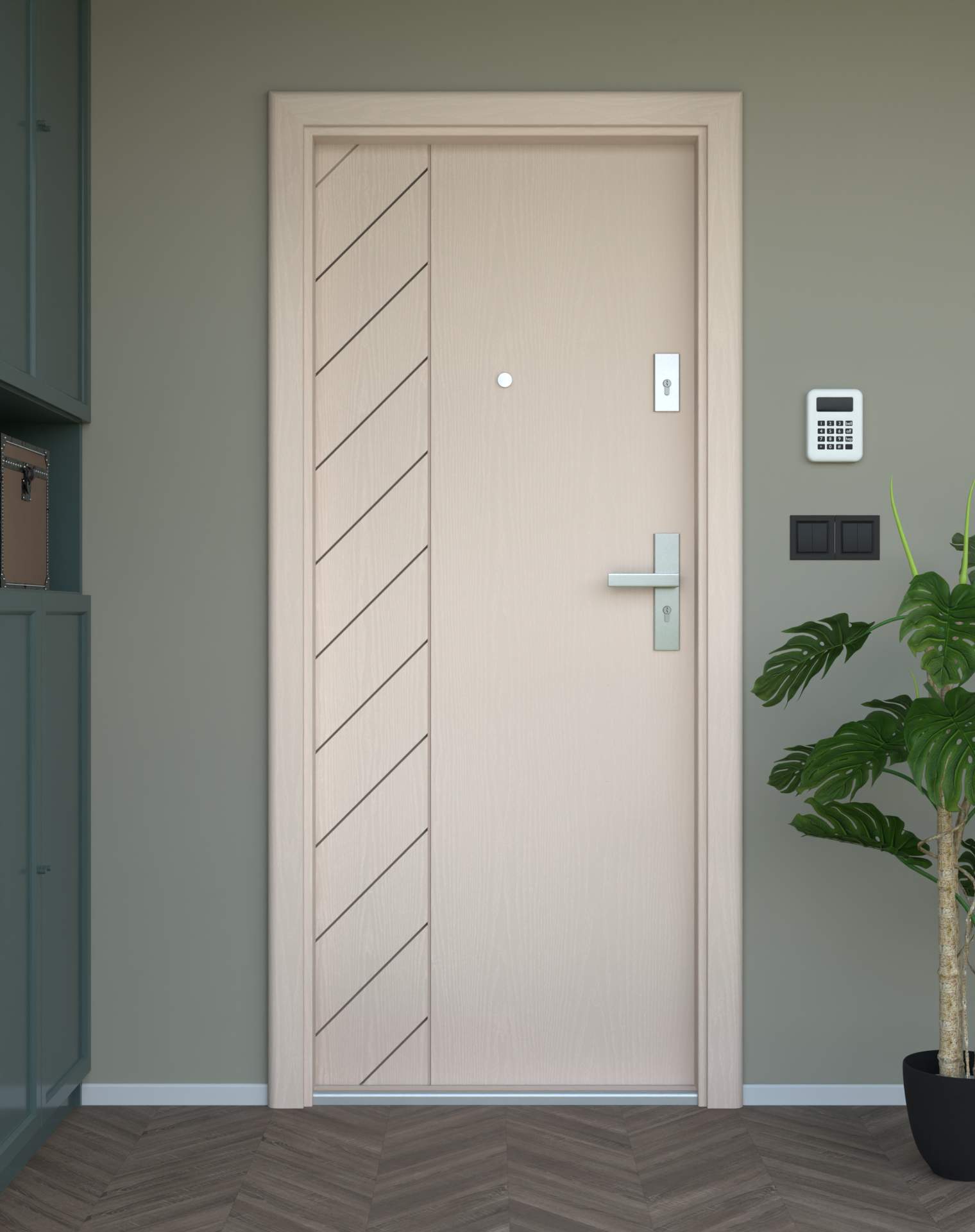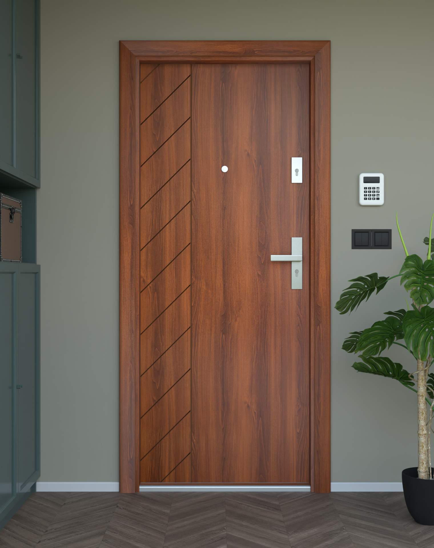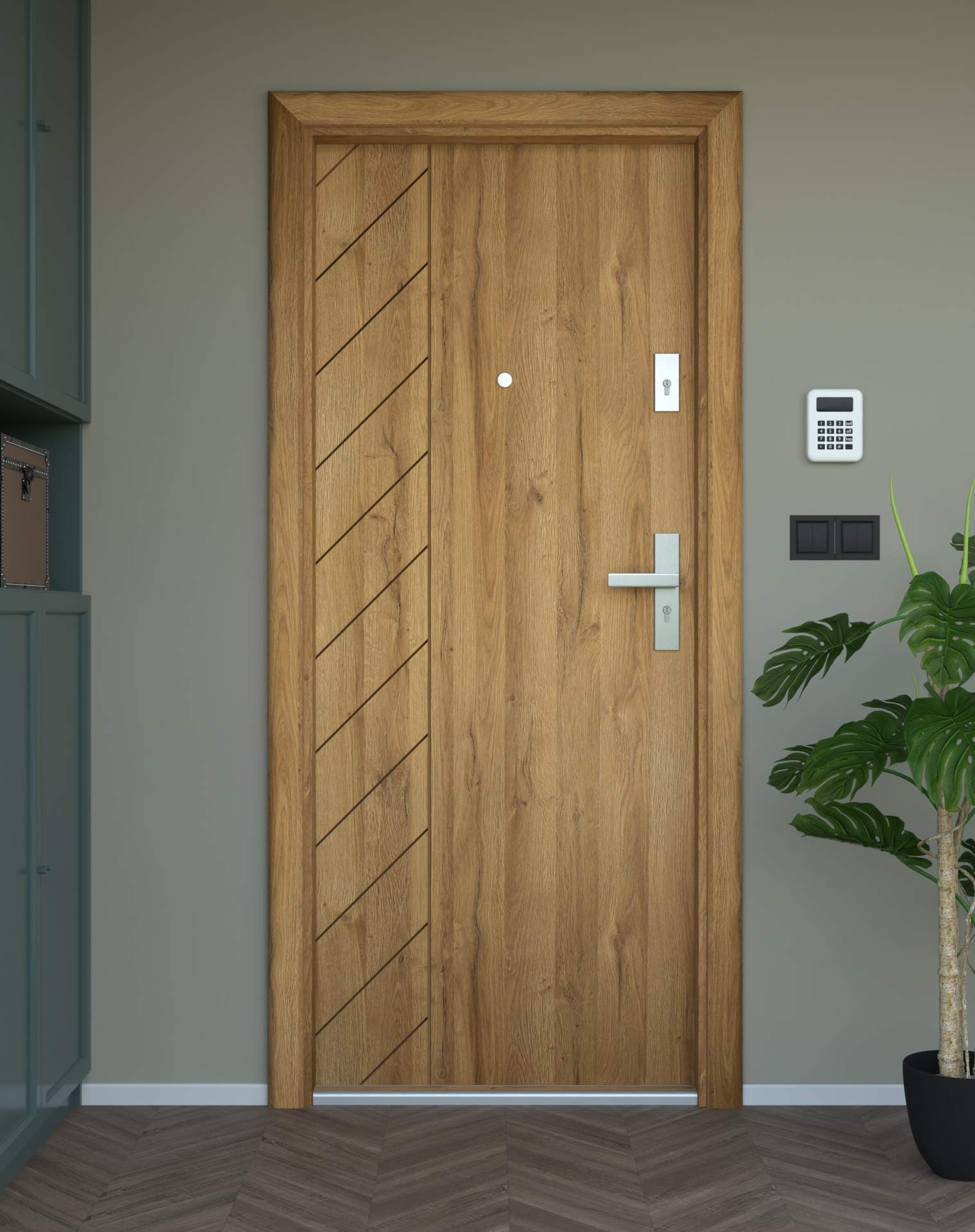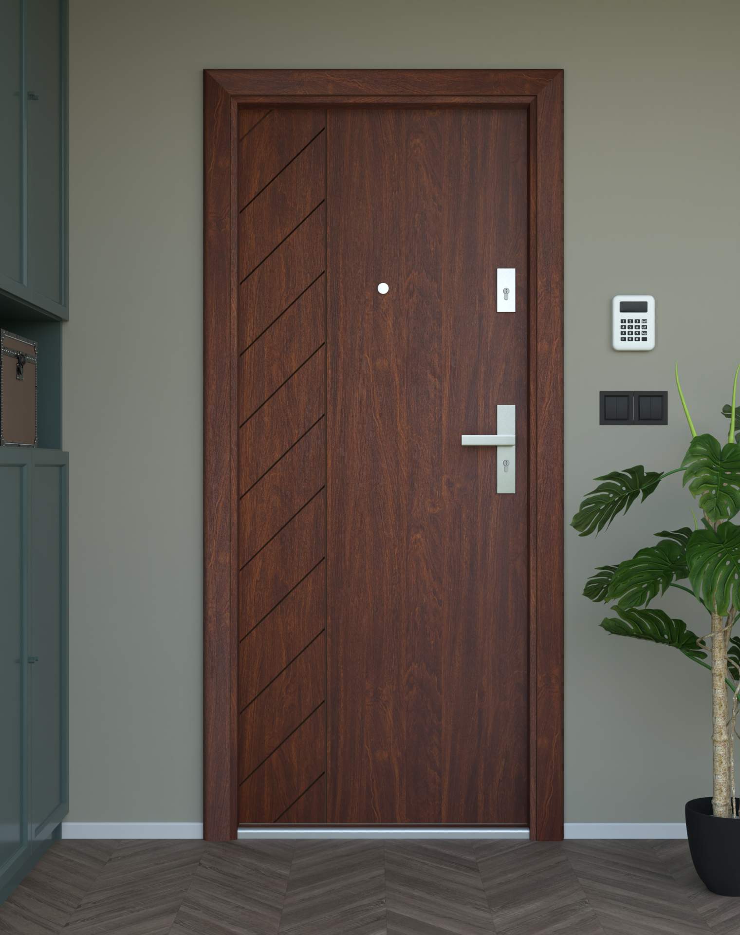 Okucia antywłamaniowe z anodowanego aluminium, odporne na zarysowania i próby włamania, zgodne z normą RC2. Komplet obejmuje rozwiązania konstrukcyjne zwiększające ochronę drzwi wejściowych.