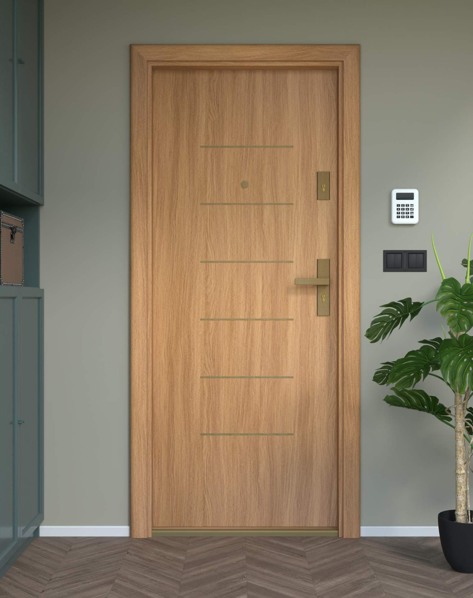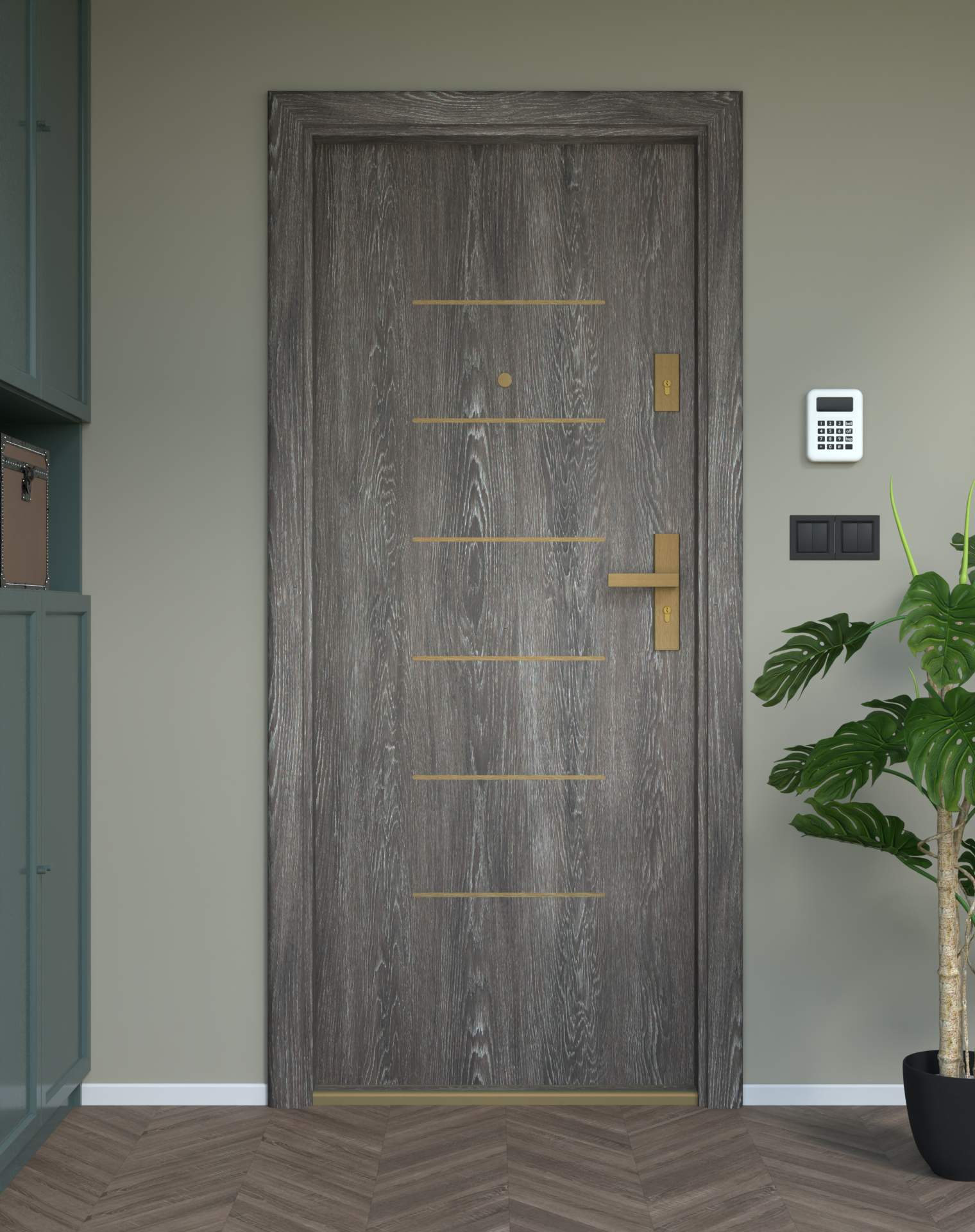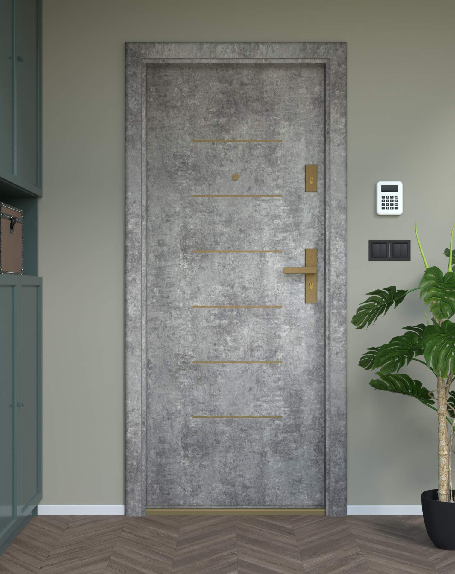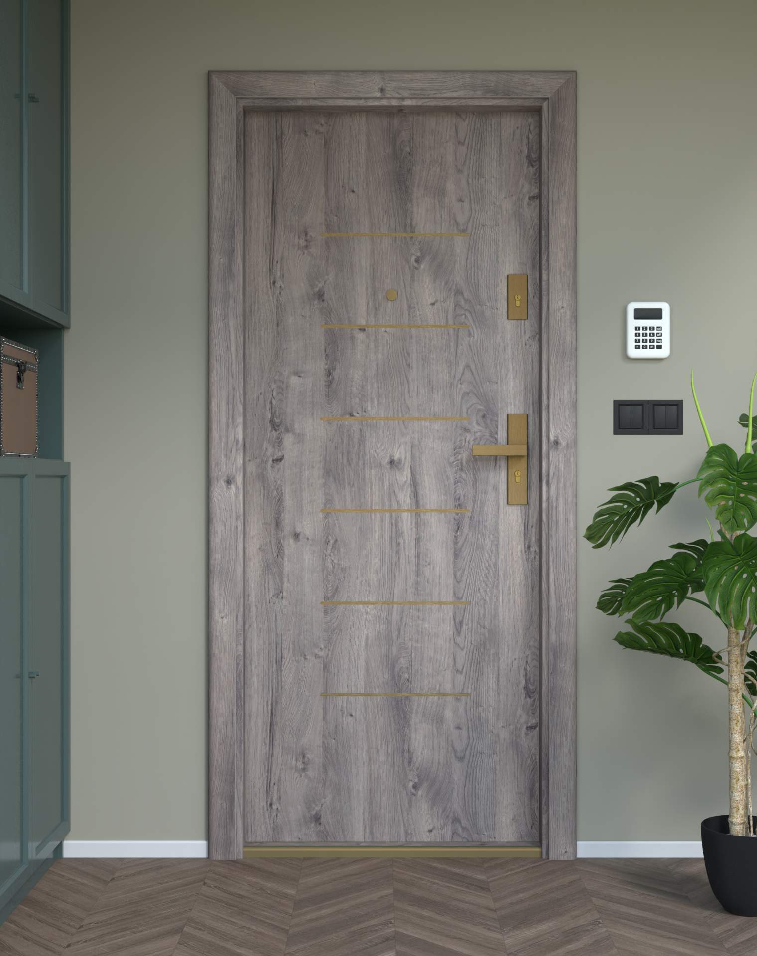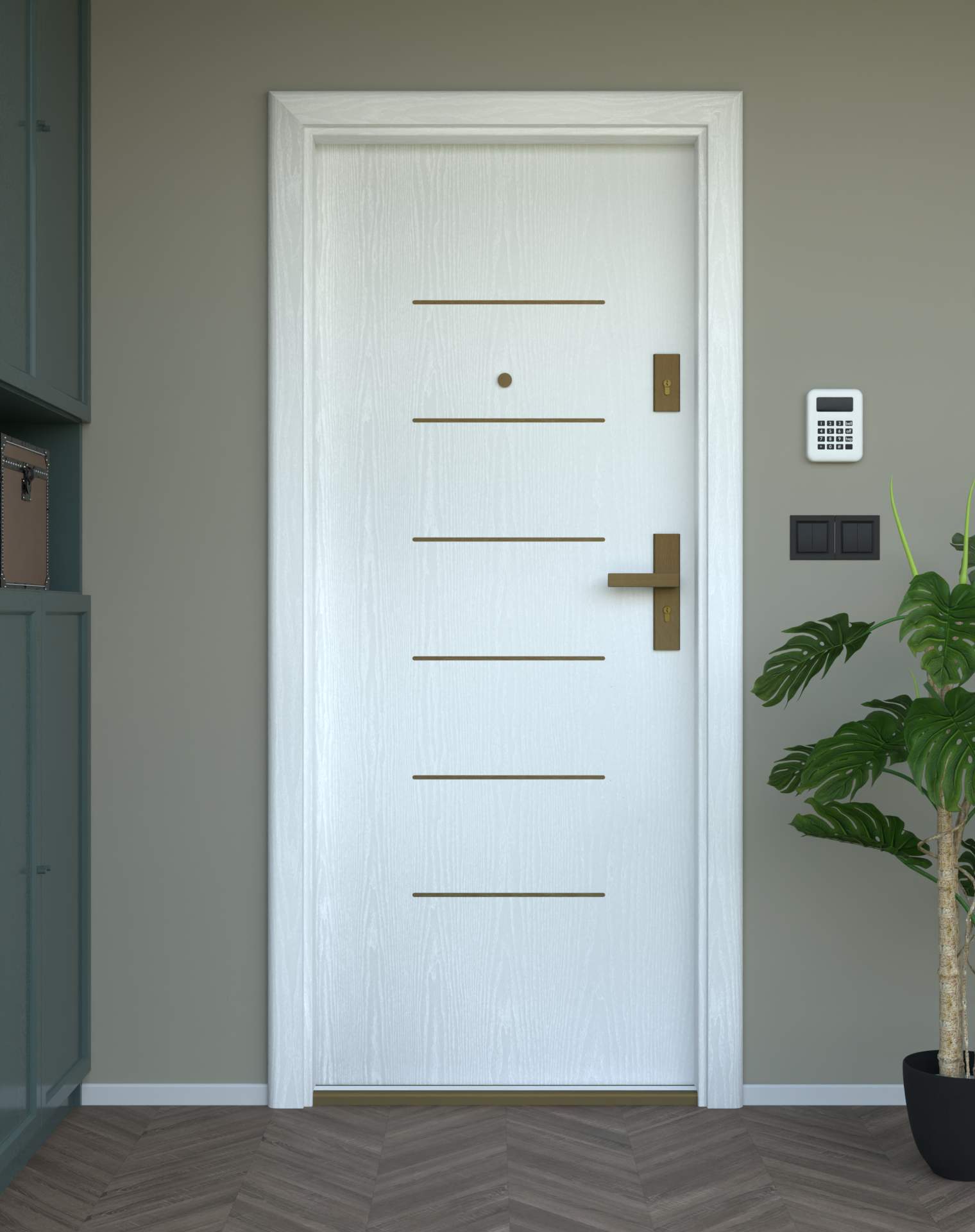 Drzwi z kolekcji Bastion Alu wyróżniają się nowoczesnym wzornictwem uzupełnionym o aluminiowe intarsje w kolorze Inox (srebrnym), rozmieszczone pionowo lub poziomo w zależności od modelu. Wstawki mogą być smukłe lub pogrubione, rozmieszczone pionowo bądź poziomo, tworząc elegancki kontrast z powierzchnią skrzydła, która może być gładka lub wzbogacona frezowaniem. Solidna konstrukcja z płytą dźwiękochłonną lub panelem wyciszającym gwarantuje trwałość i bardzo dobrą izolację akustyczną.