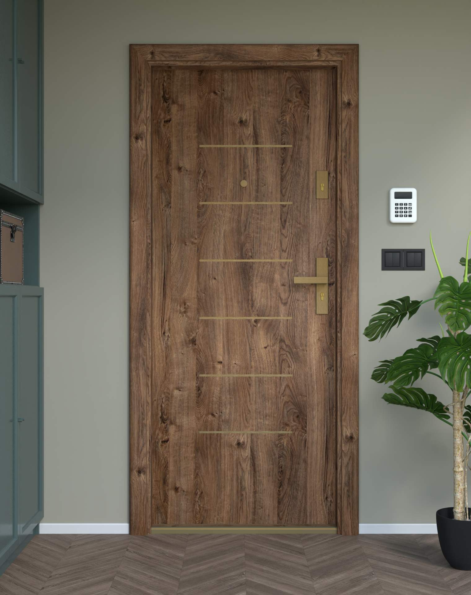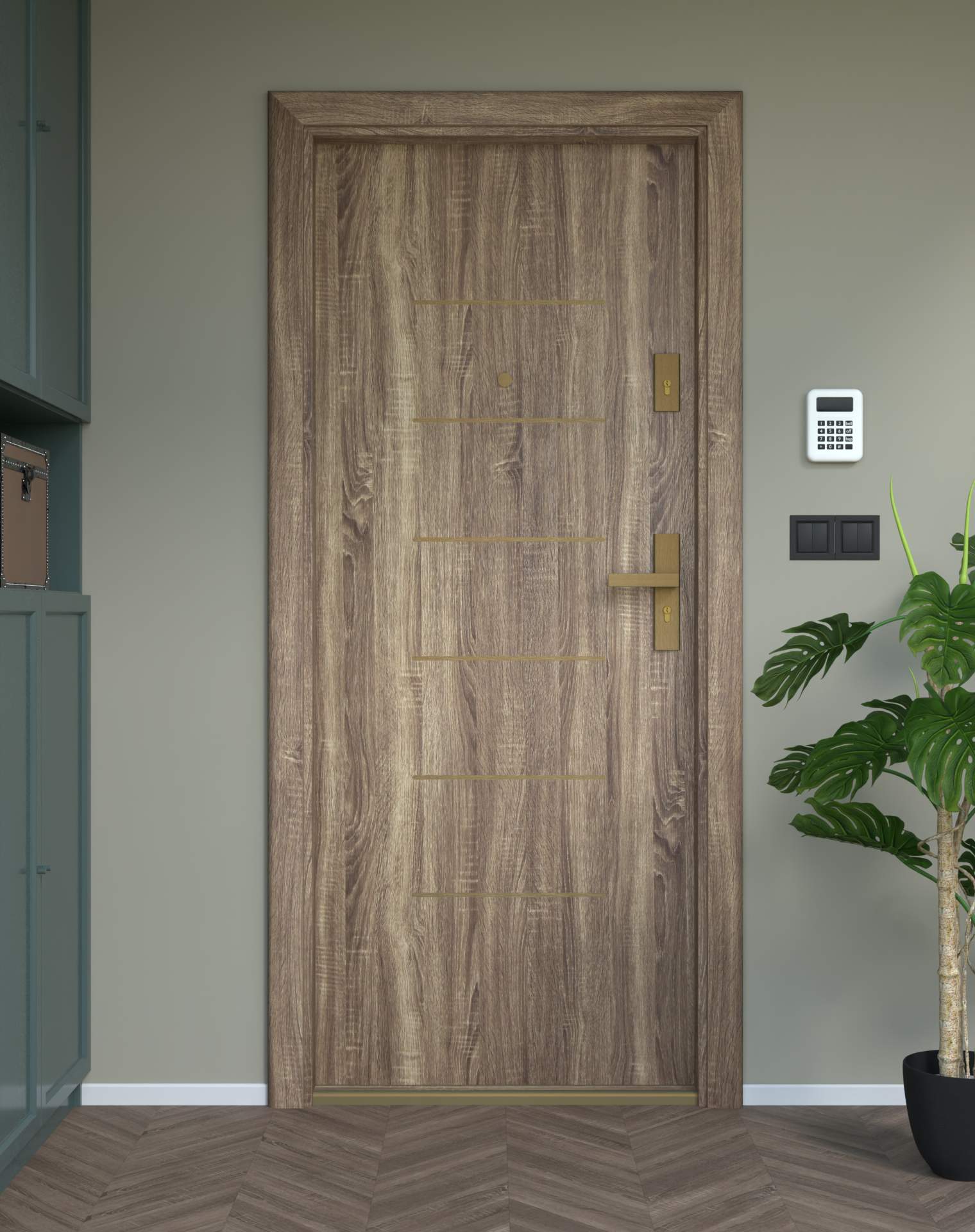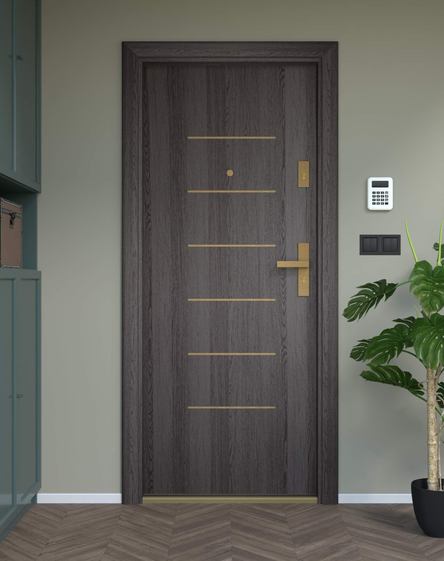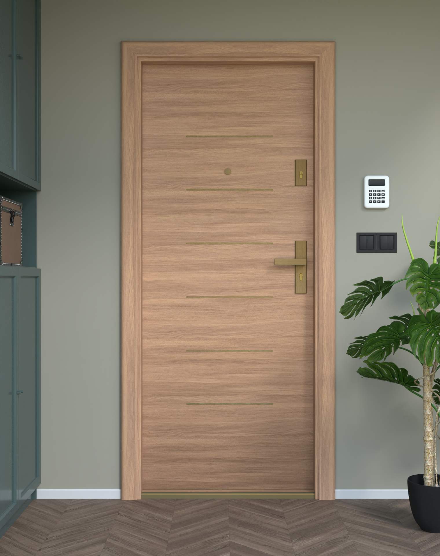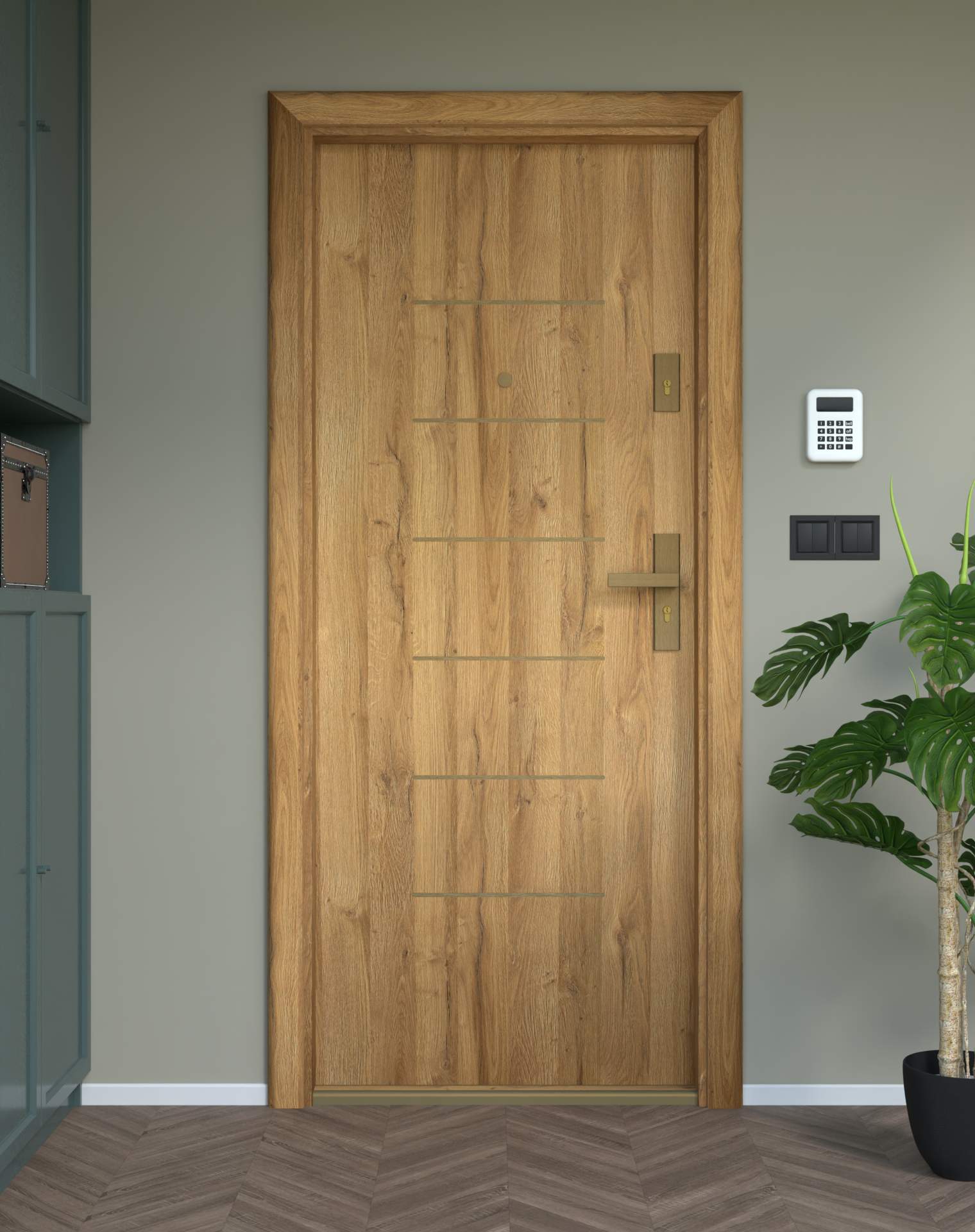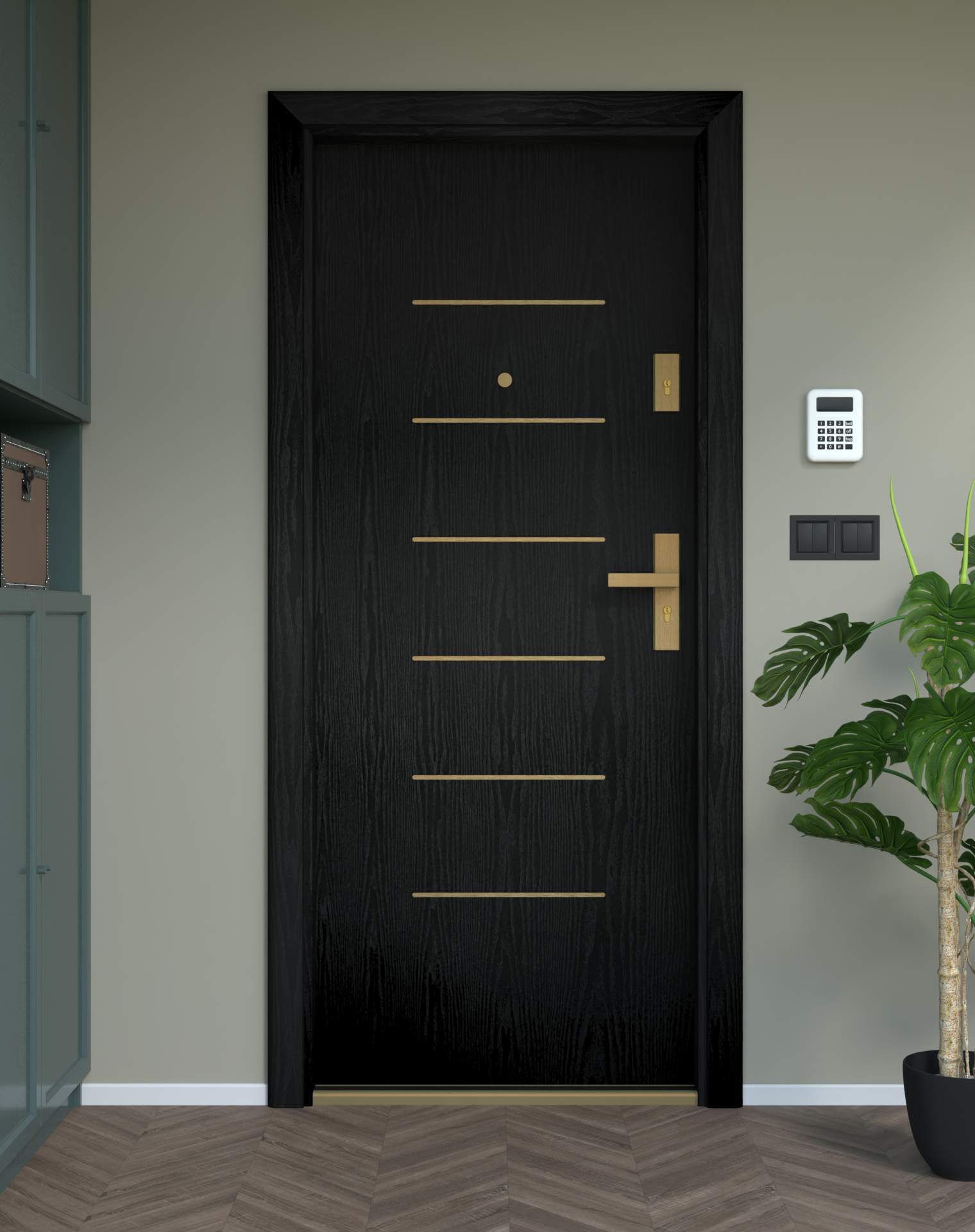 Drzwi z kolekcji Bastion Alu wyróżniają się nowoczesnym wzornictwem uzupełnionym o aluminiowe intarsje w kolorze Inox (srebrnym), rozmieszczone pionowo lub poziomo w zależności od modelu. Wstawki mogą być smukłe lub pogrubione, rozmieszczone pionowo bądź poziomo, tworząc elegancki kontrast z powierzchnią skrzydła, która może być gładka lub wzbogacona frezowaniem. Solidna konstrukcja z płytą dźwiękochłonną lub panelem wyciszającym gwarantuje trwałość i bardzo dobrą izolację akustyczną.