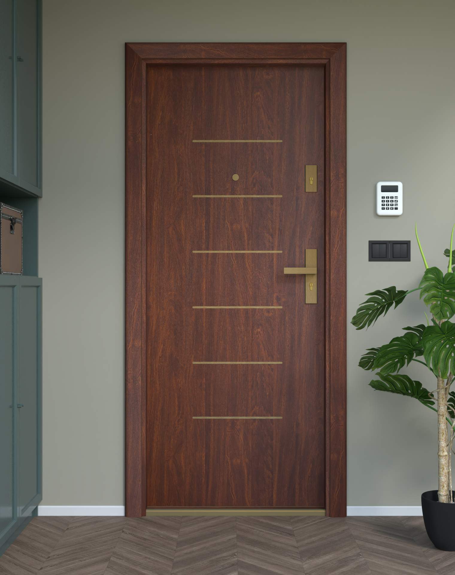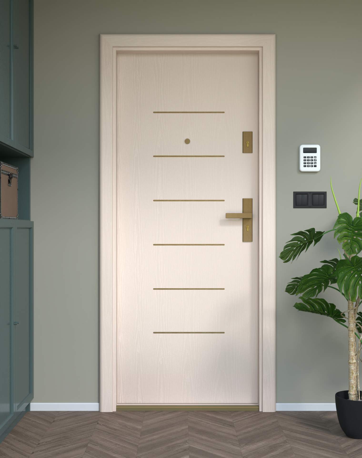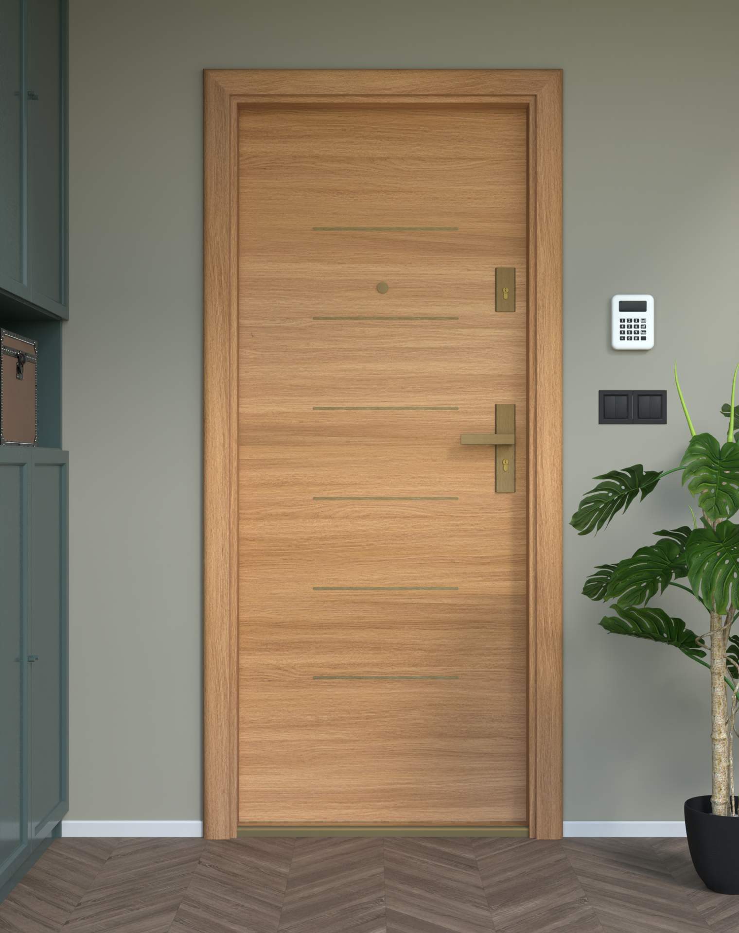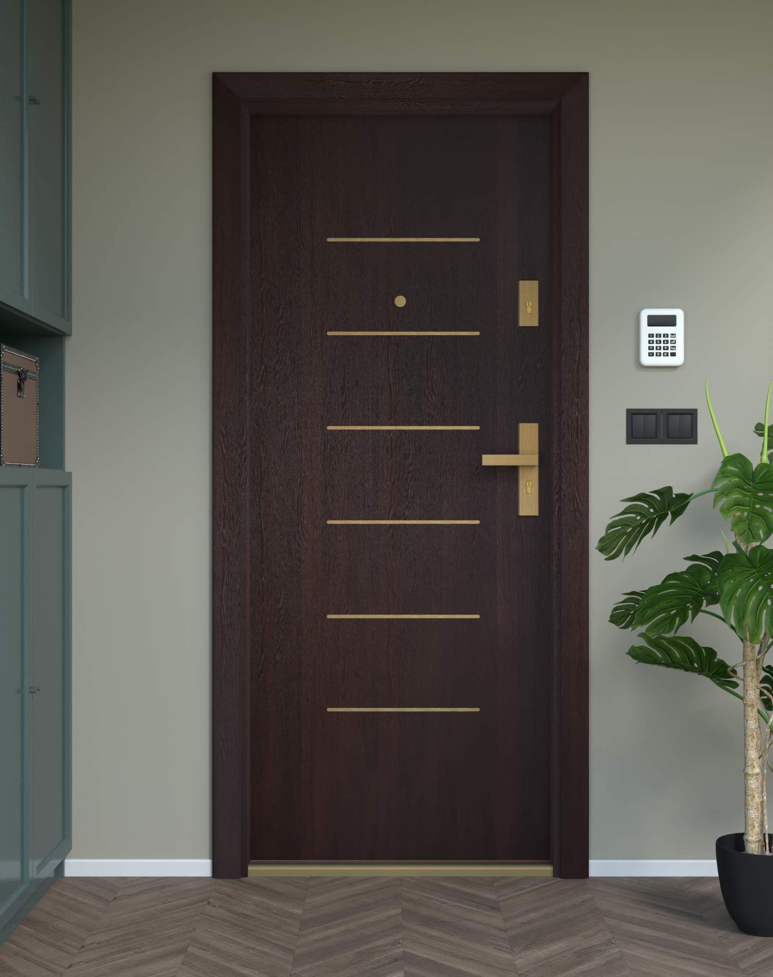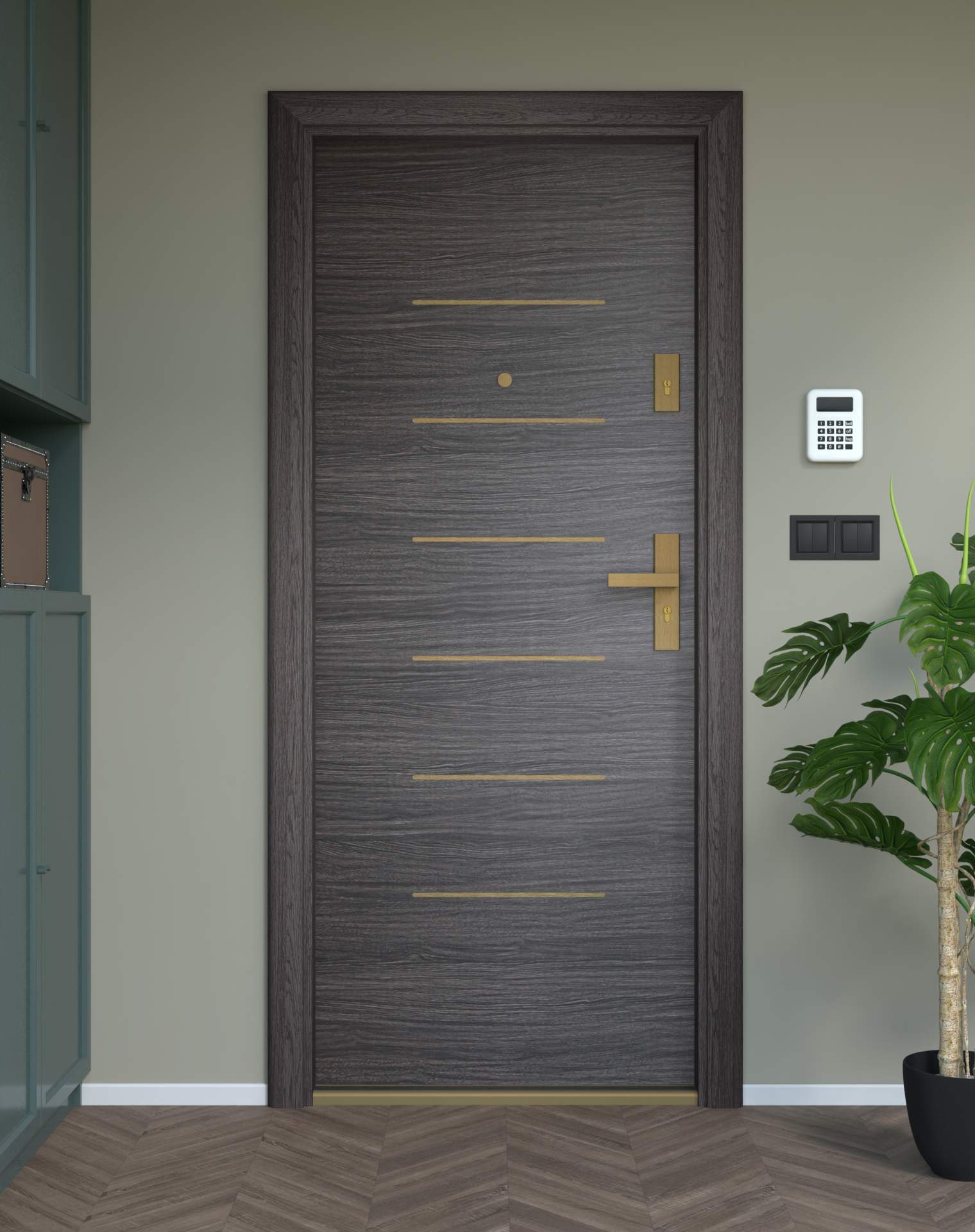 Drzwi z kolekcji Bastion Alu wyróżniają się nowoczesnym wzornictwem uzupełnionym o aluminiowe intarsje w kolorze Inox (srebrnym), rozmieszczone pionowo lub poziomo w zależności od modelu. Wstawki mogą być smukłe lub pogrubione, rozmieszczone pionowo bądź poziomo, tworząc elegancki kontrast z powierzchnią skrzydła, która może być gładka lub wzbogacona frezowaniem. Solidna konstrukcja z płytą dźwiękochłonną lub panelem wyciszającym gwarantuje trwałość i bardzo dobrą izolację akustyczną.