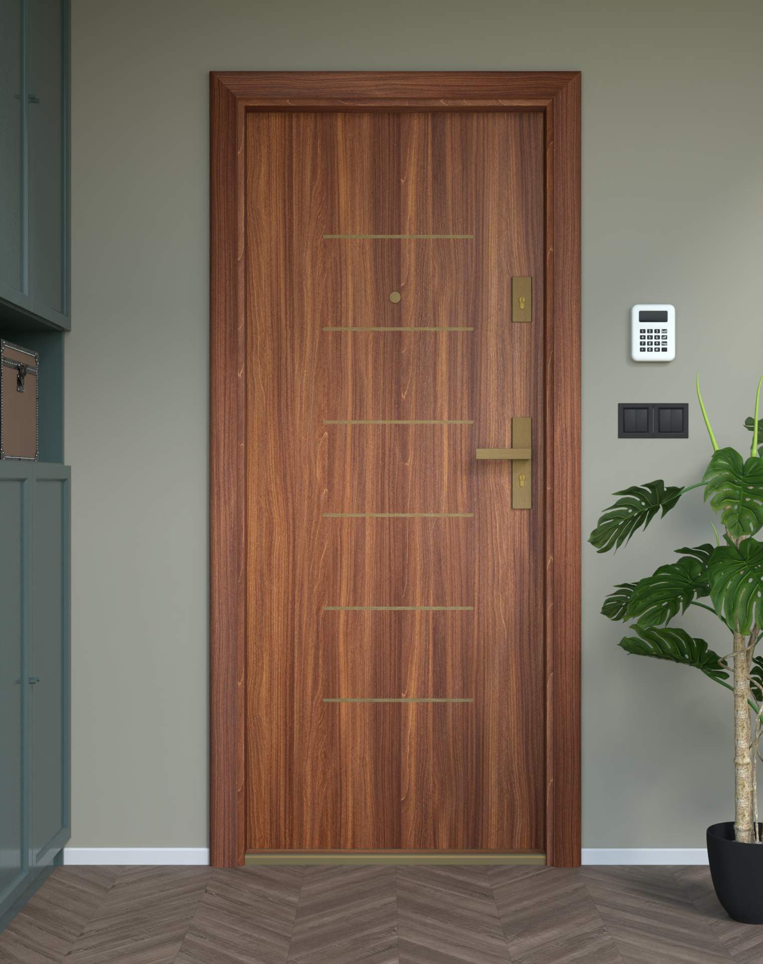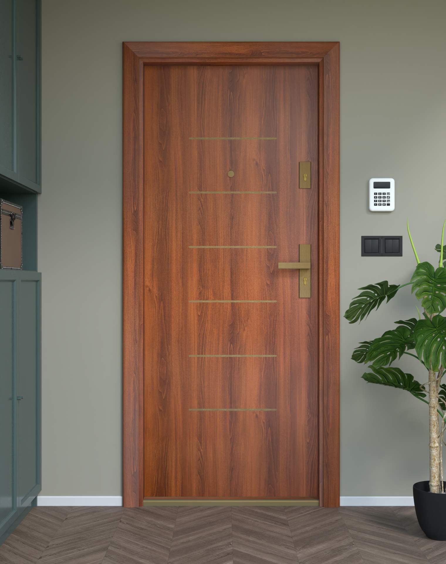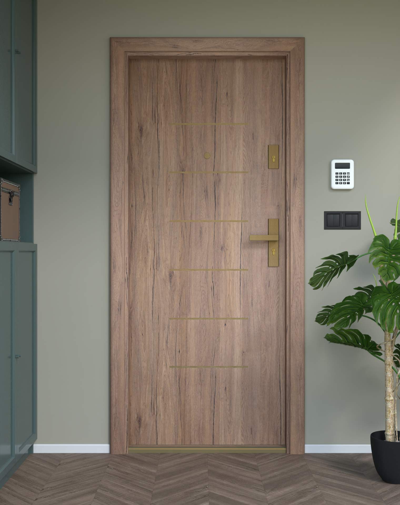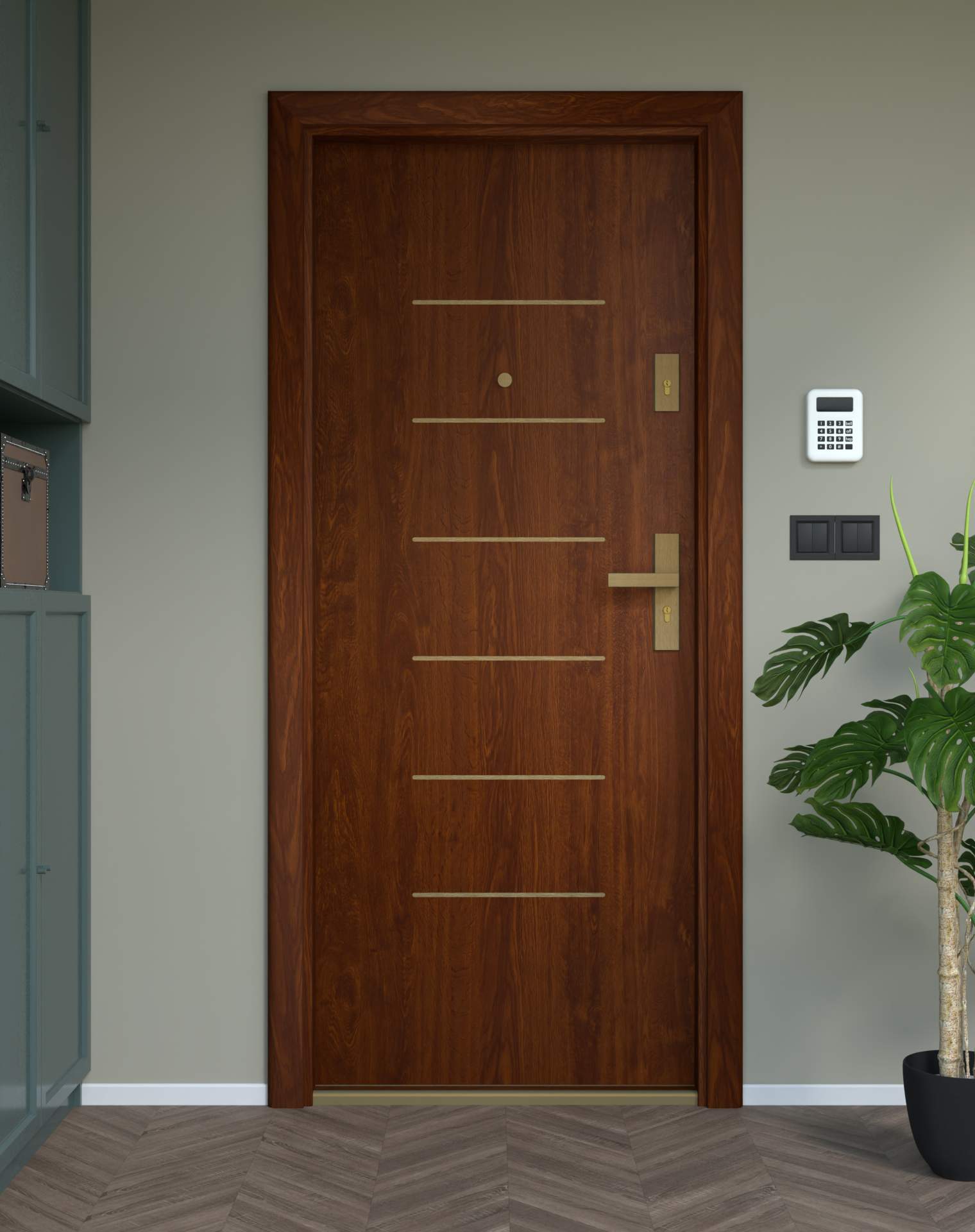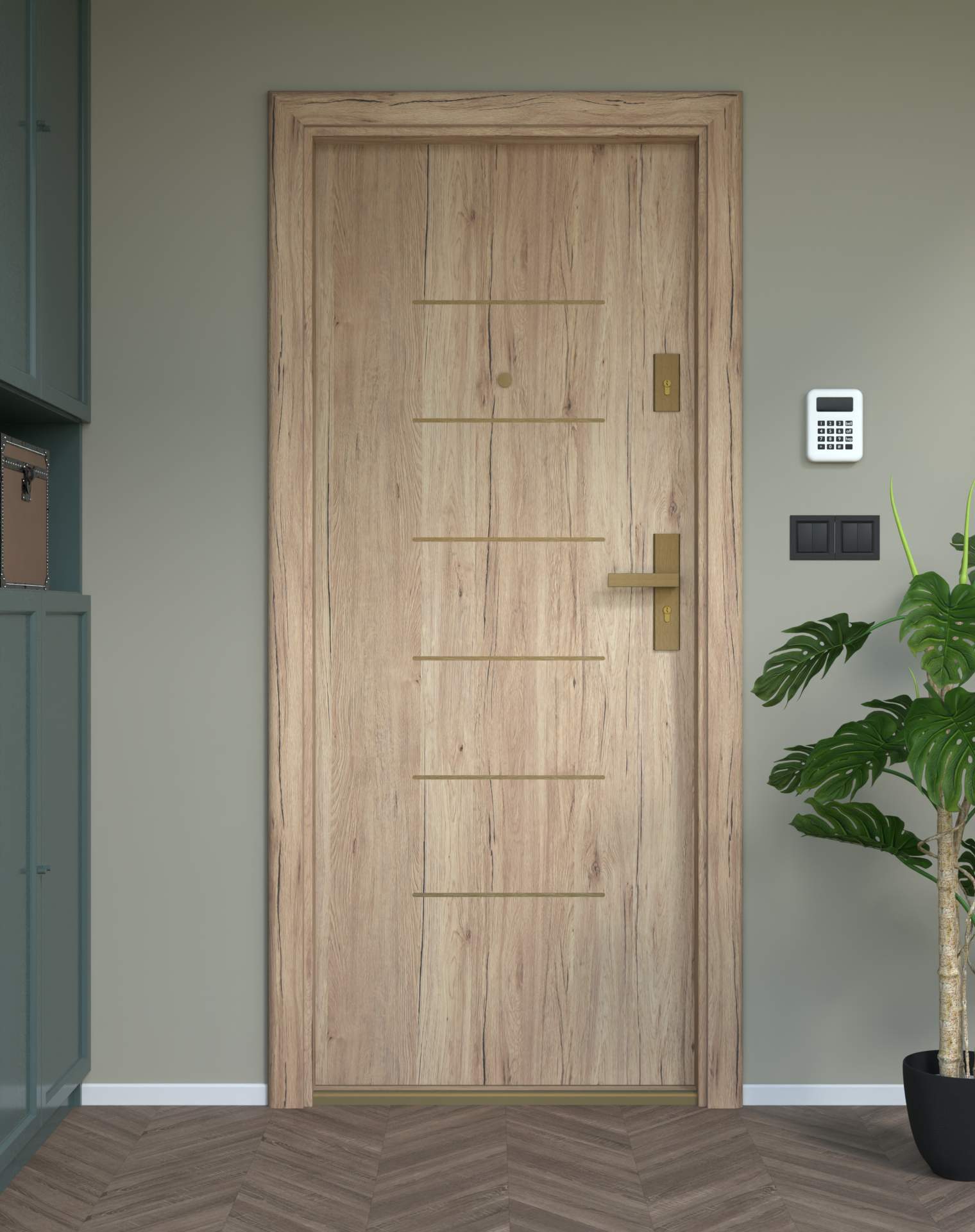 Drzwi z kolekcji Bastion Alu wyróżniają się nowoczesnym wzornictwem uzupełnionym o aluminiowe intarsje w kolorze Inox (srebrnym), rozmieszczone pionowo lub poziomo w zależności od modelu. Wstawki mogą być smukłe lub pogrubione, rozmieszczone pionowo bądź poziomo, tworząc elegancki kontrast z powierzchnią skrzydła, która może być gładka lub wzbogacona frezowaniem. Solidna konstrukcja z płytą dźwiękochłonną lub panelem wyciszającym gwarantuje trwałość i bardzo dobrą izolację akustyczną.