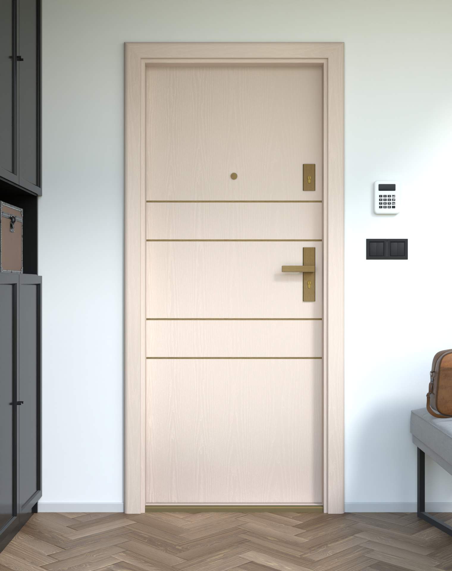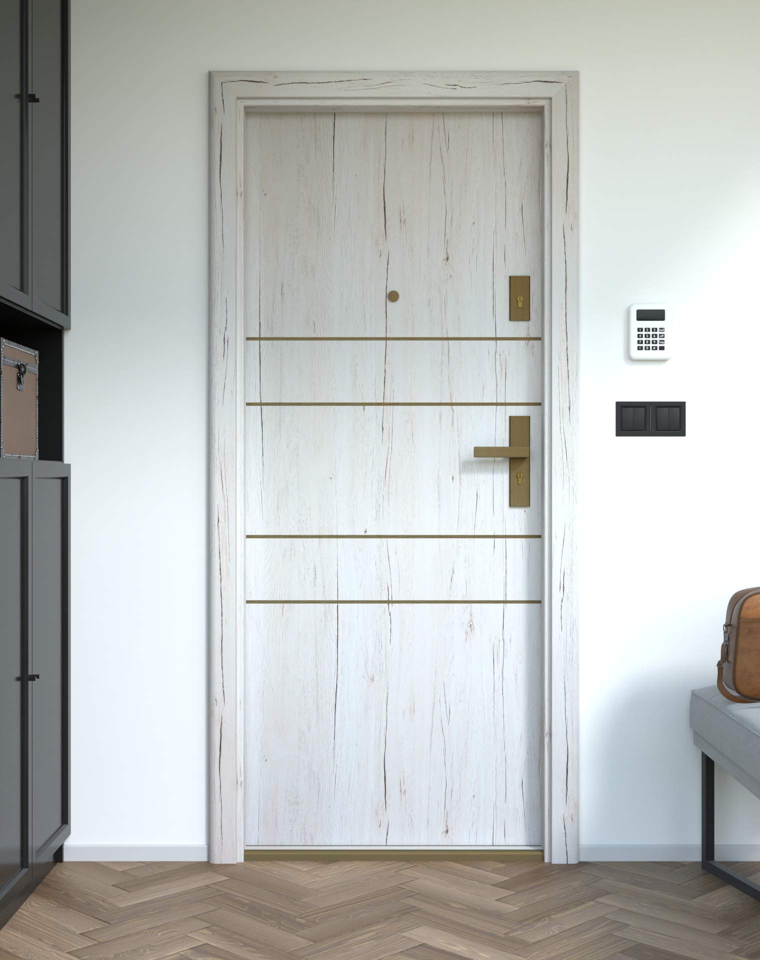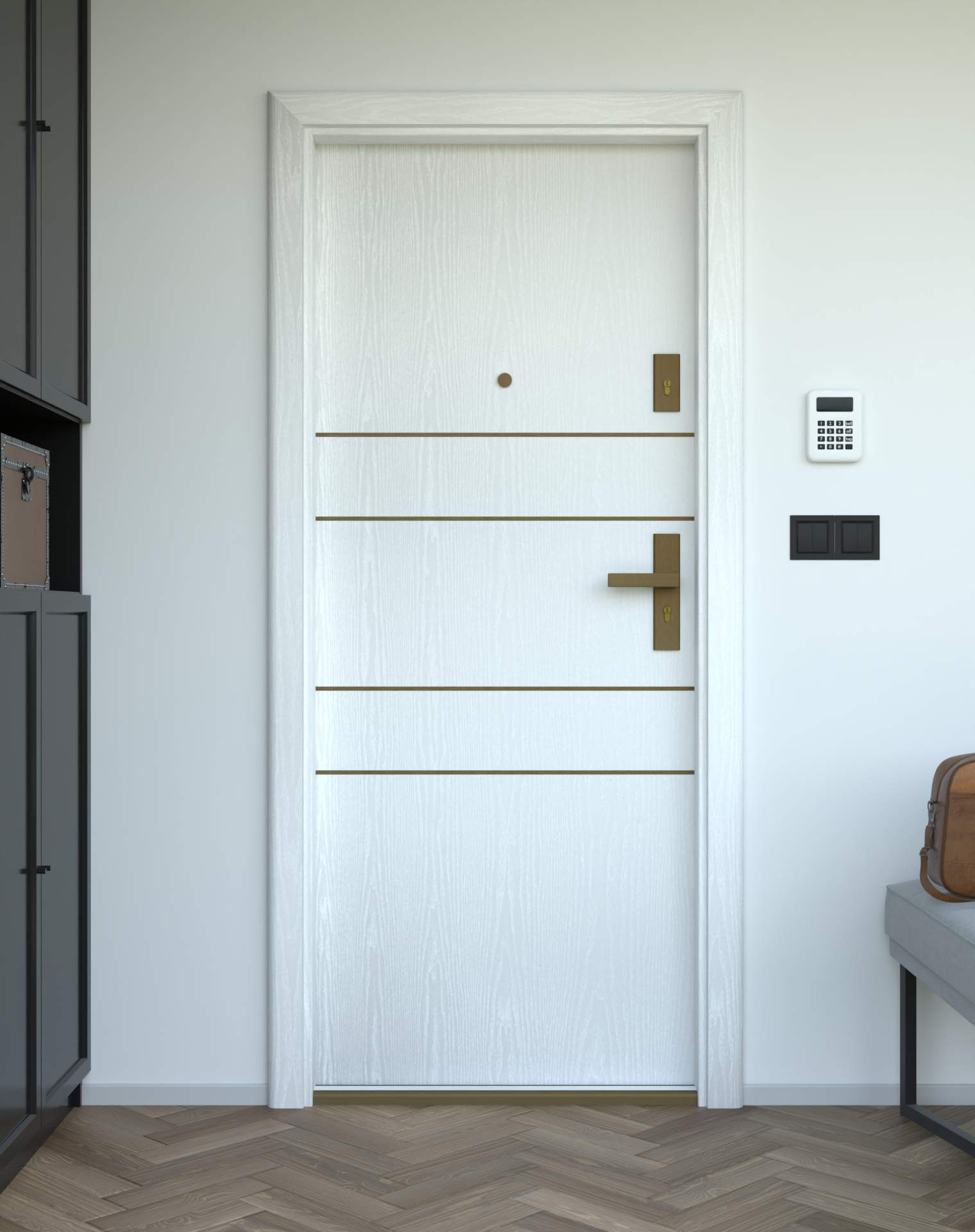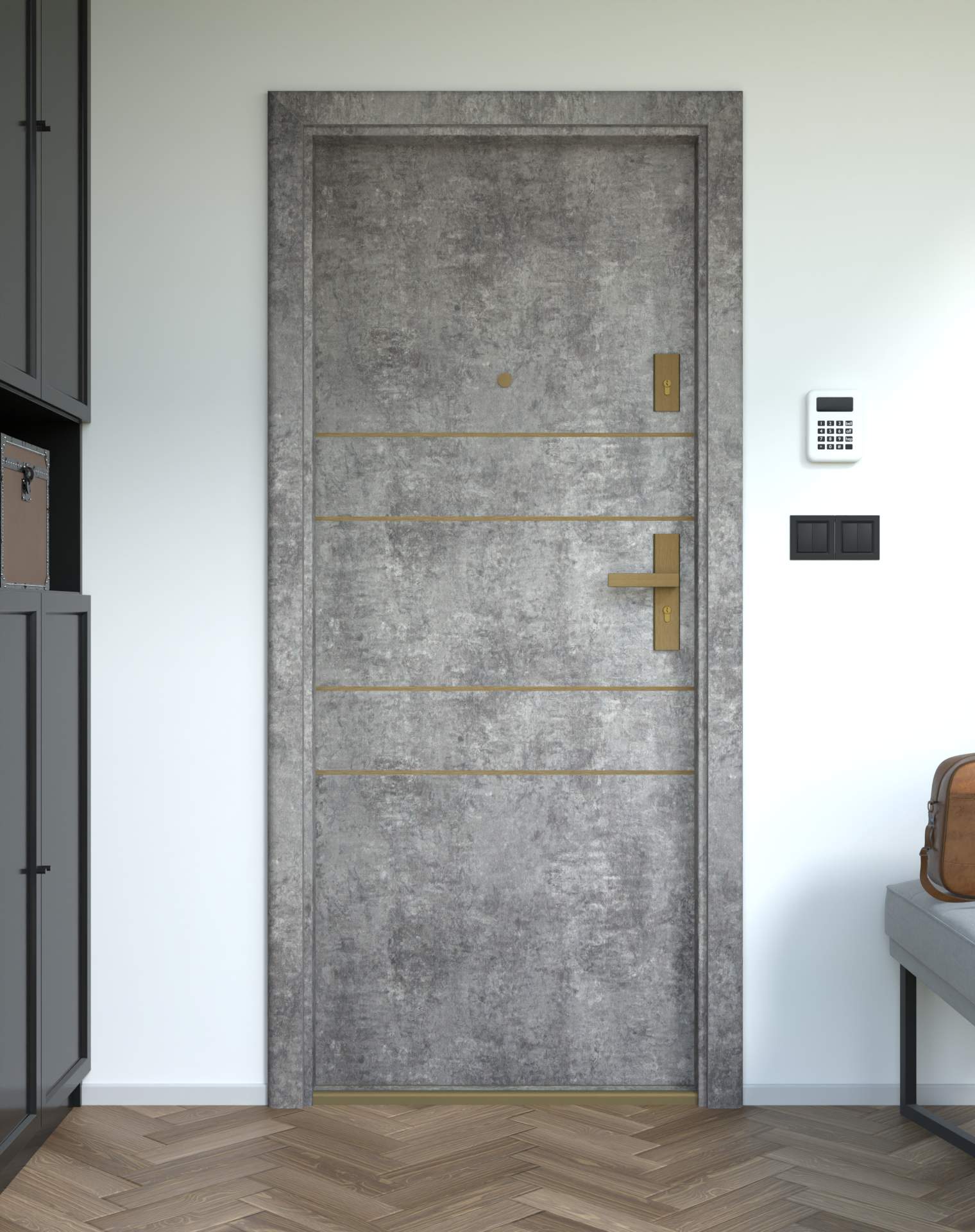 Drzwi z kolekcji Bastion Alu wyróżniają się nowoczesnym wzornictwem uzupełnionym o aluminiowe intarsje w kolorze Inox (srebrnym), rozmieszczone pionowo lub poziomo w zależności od modelu. Wstawki mogą być smukłe lub pogrubione, rozmieszczone pionowo bądź poziomo, tworząc elegancki kontrast z powierzchnią skrzydła, która może być gładka lub wzbogacona frezowaniem. Solidna konstrukcja z płytą dźwiękochłonną lub panelem wyciszającym gwarantuje trwałość i bardzo dobrą izolację akustyczną.