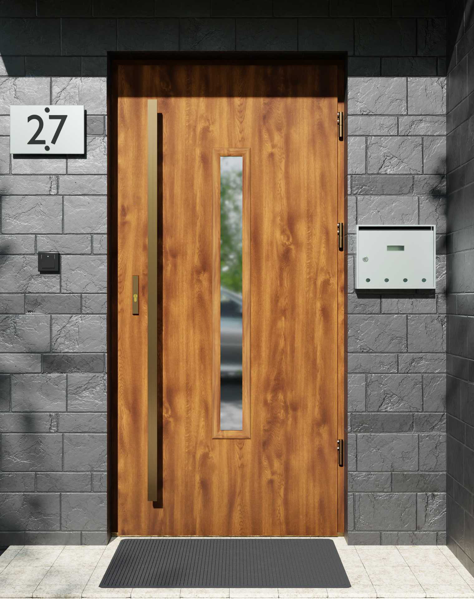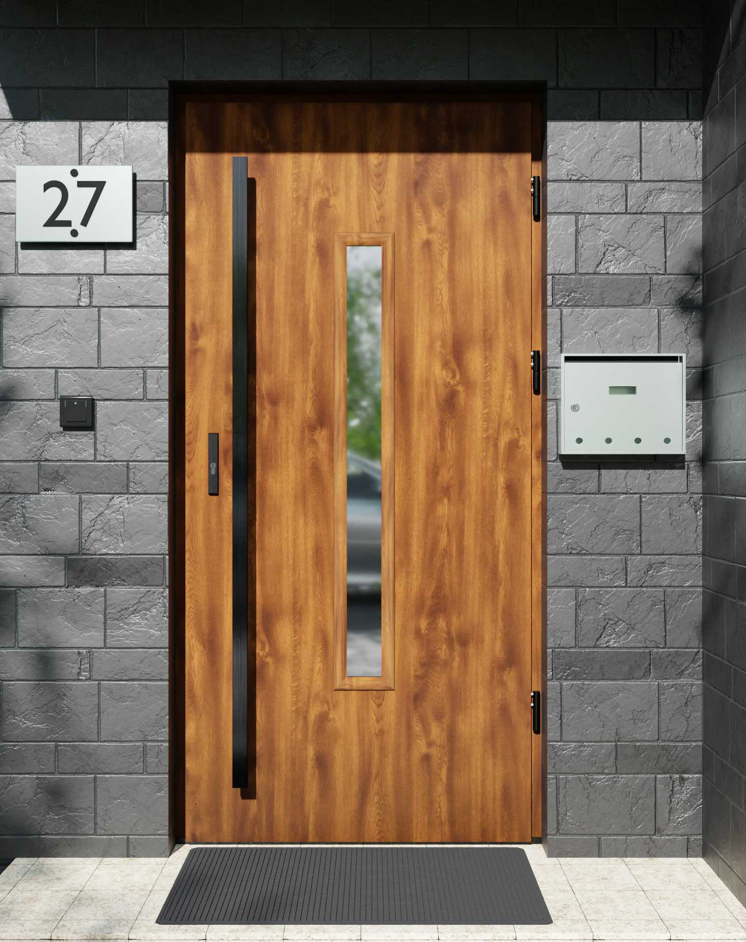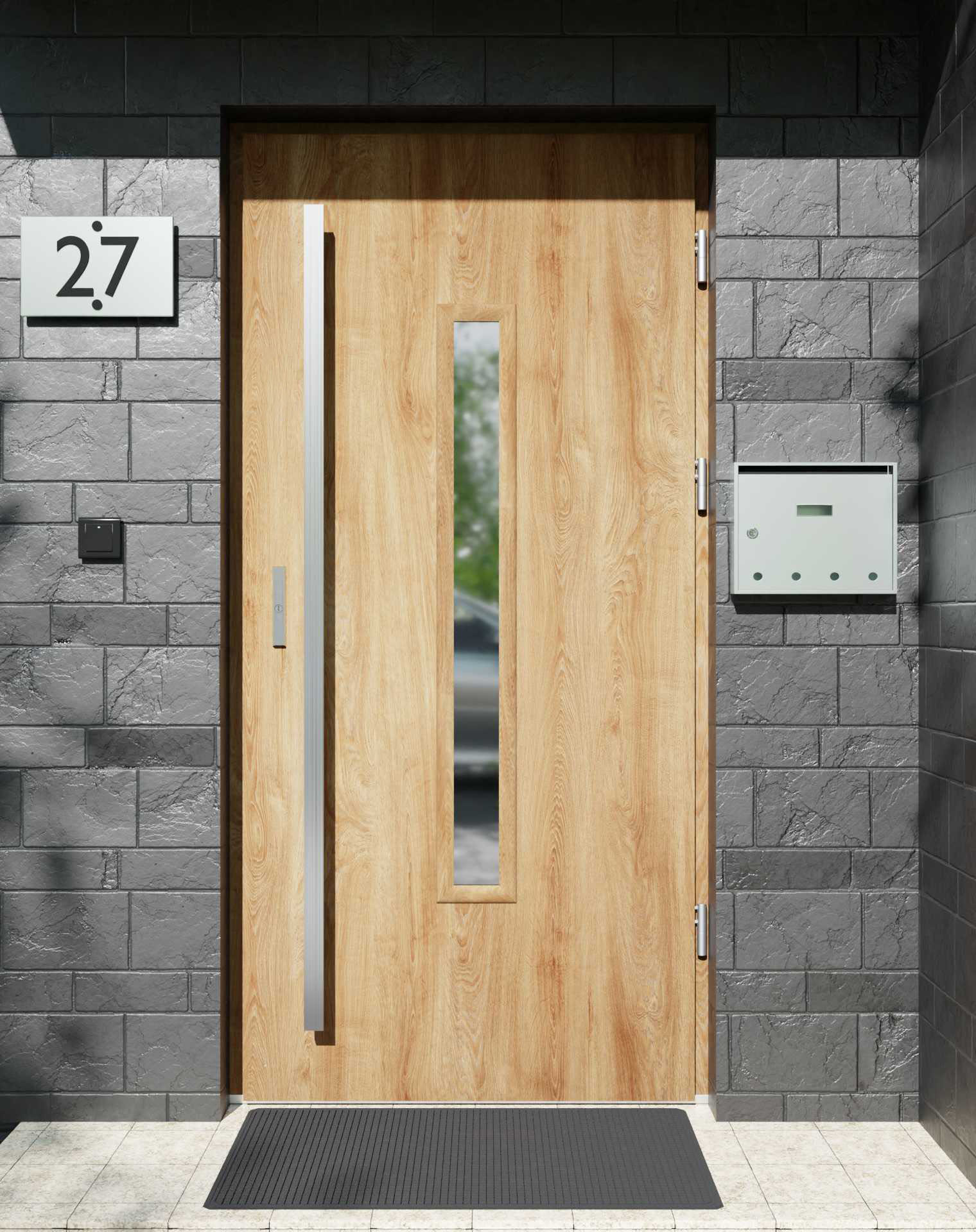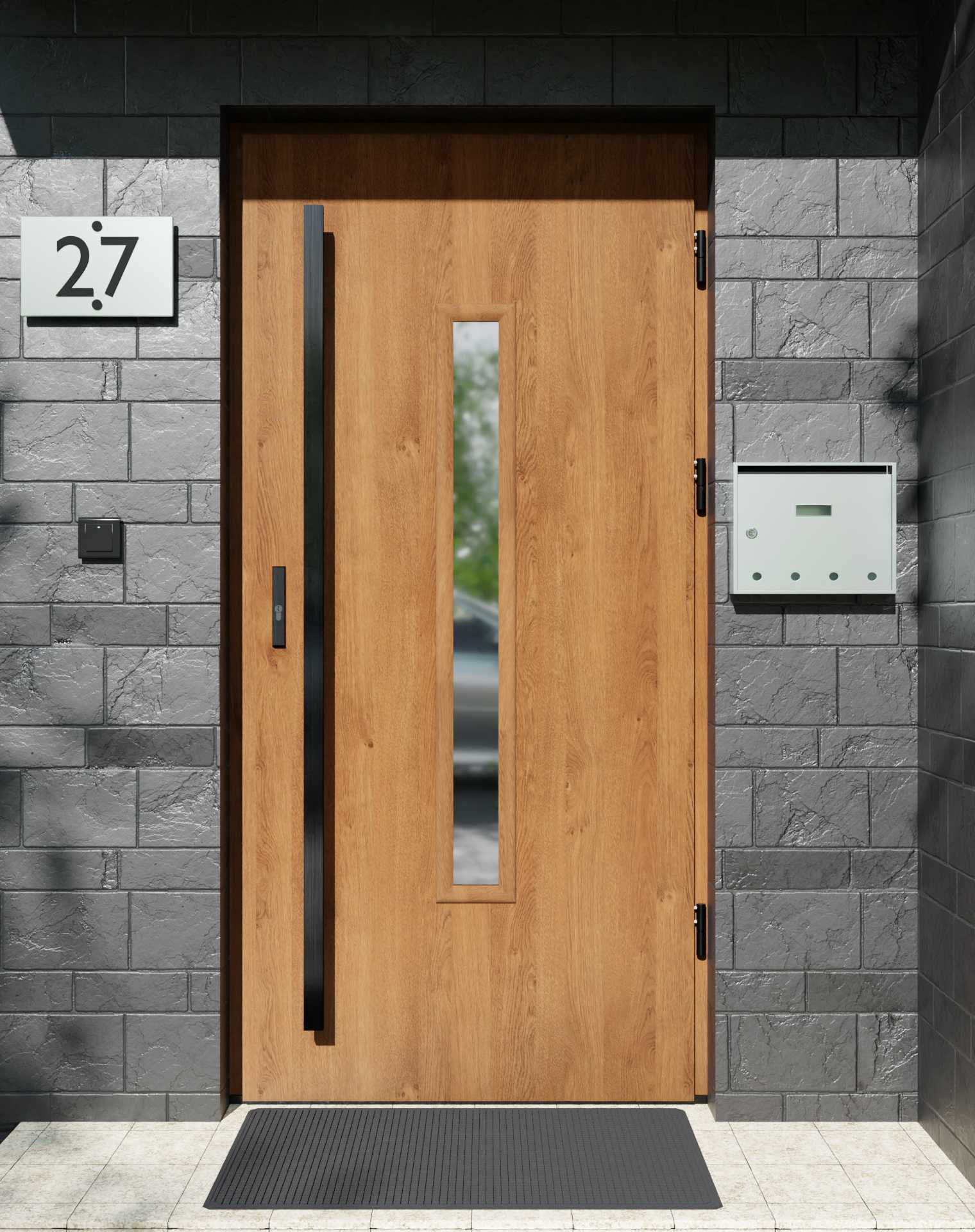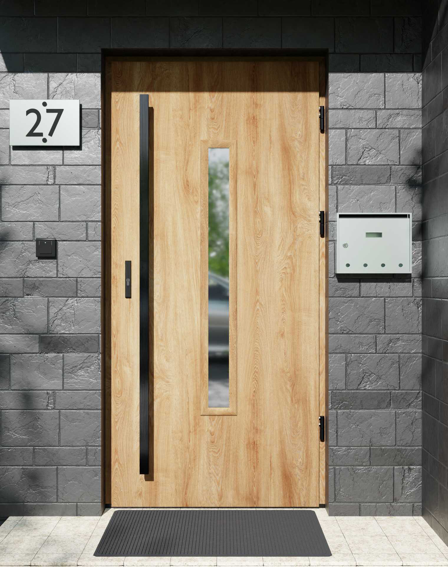 Drzwi zewnętrzne do domu z pochwytem i ościeżnicą aluminiową Otto 23 w systemie Alu