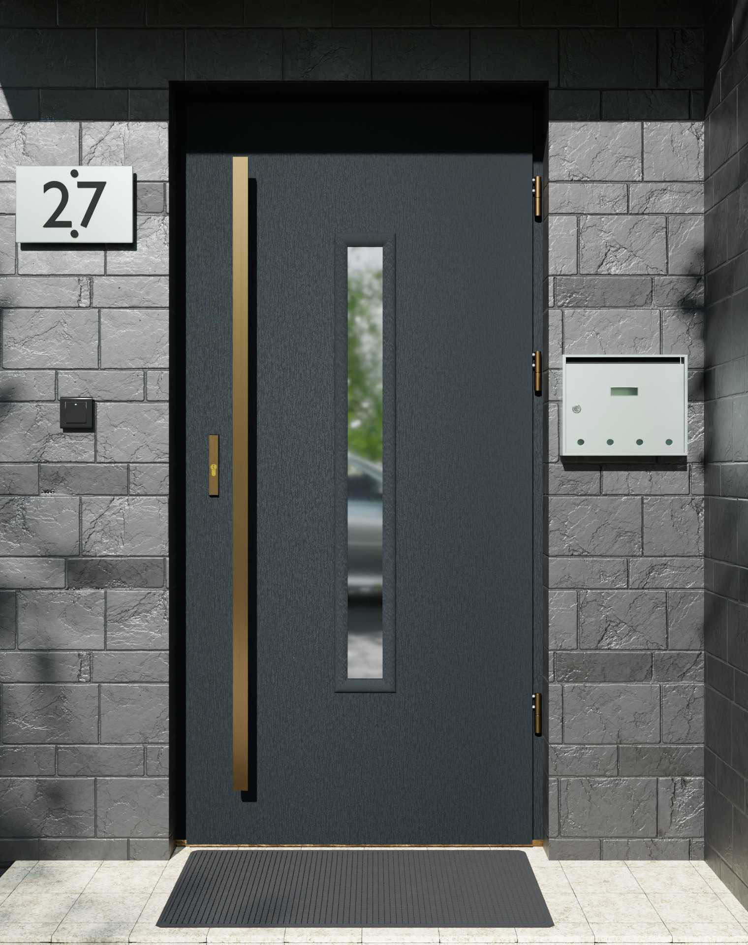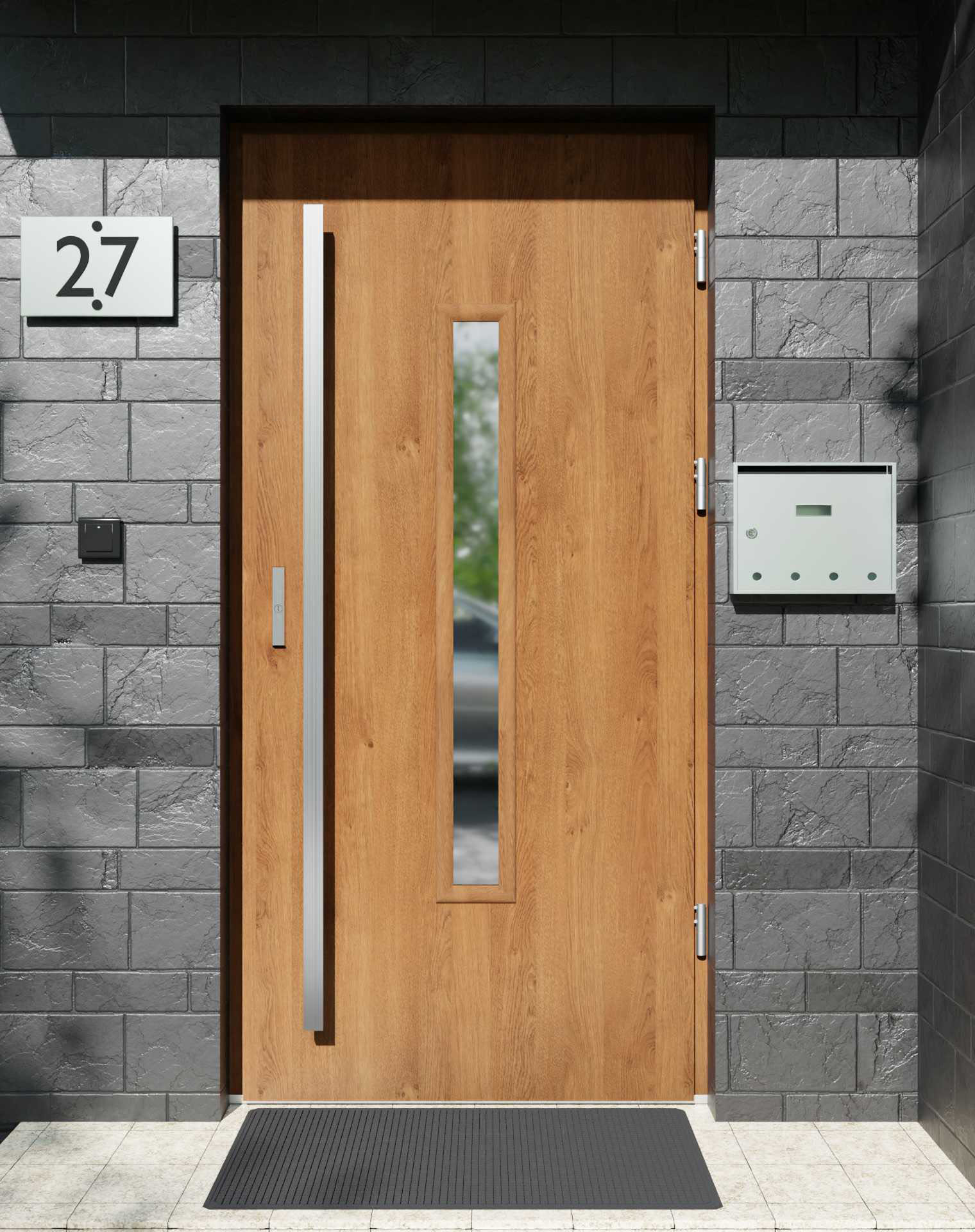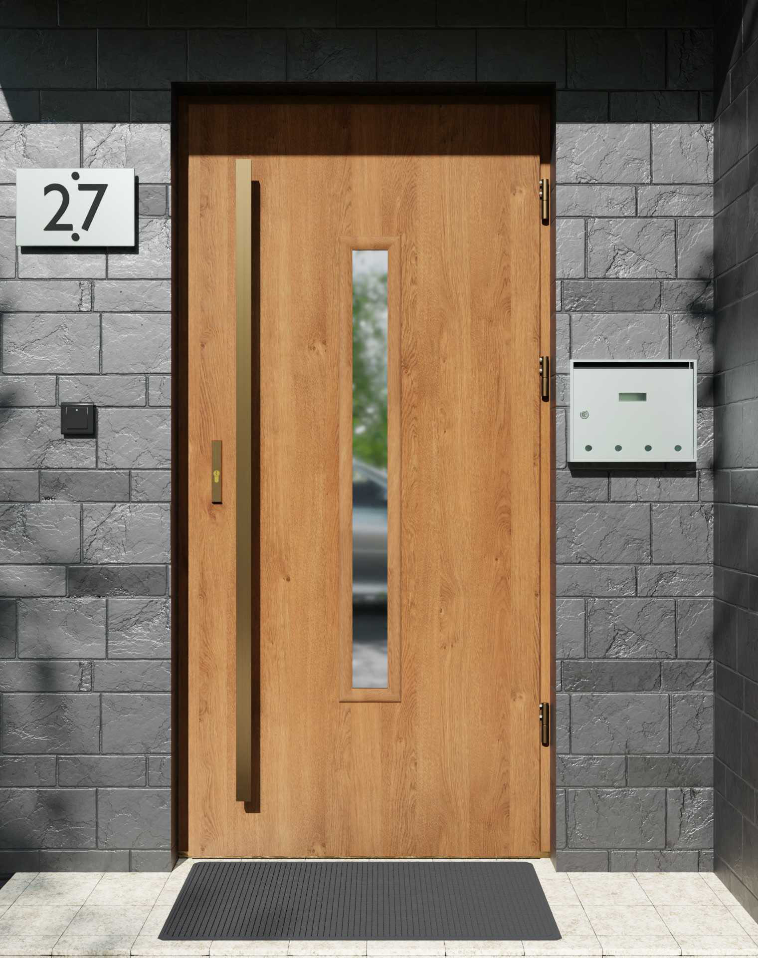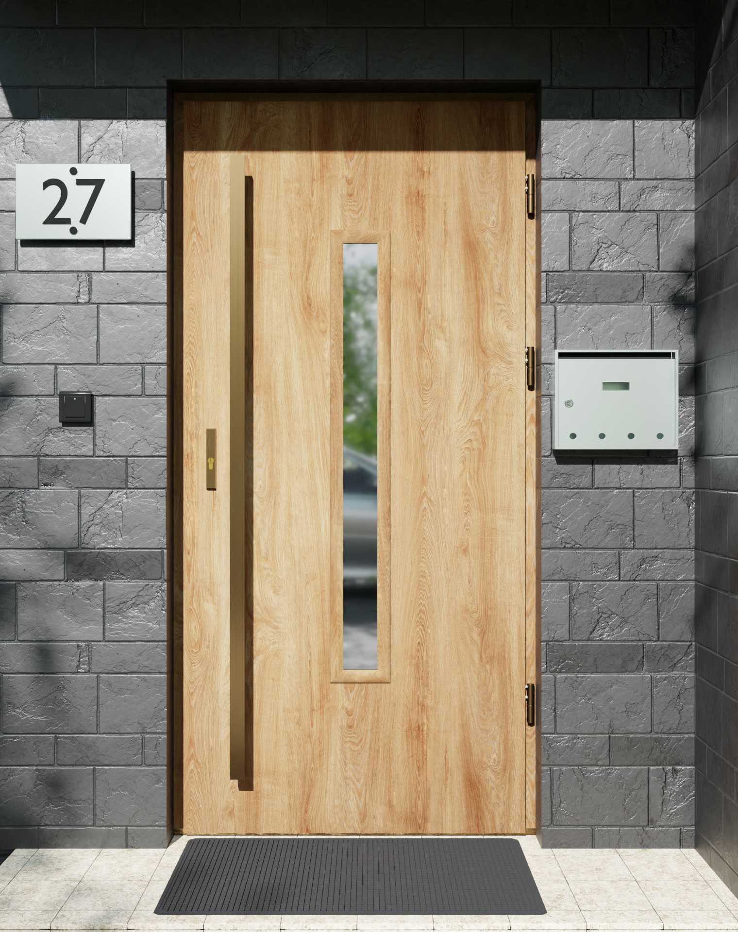 Drzwi zewnętrzne do domu z pochwytem i ościeżnicą aluminiową Otto 23 w systemie Alu