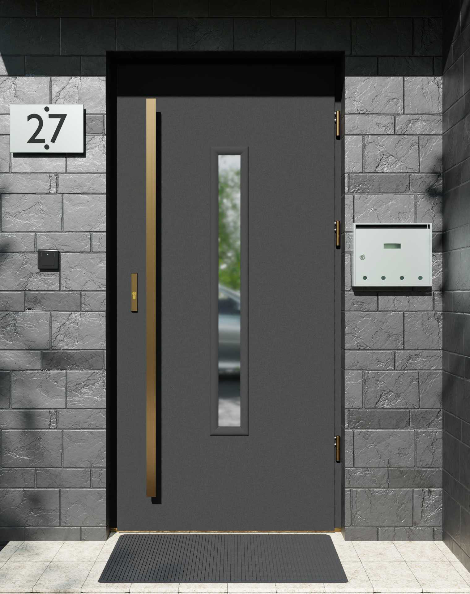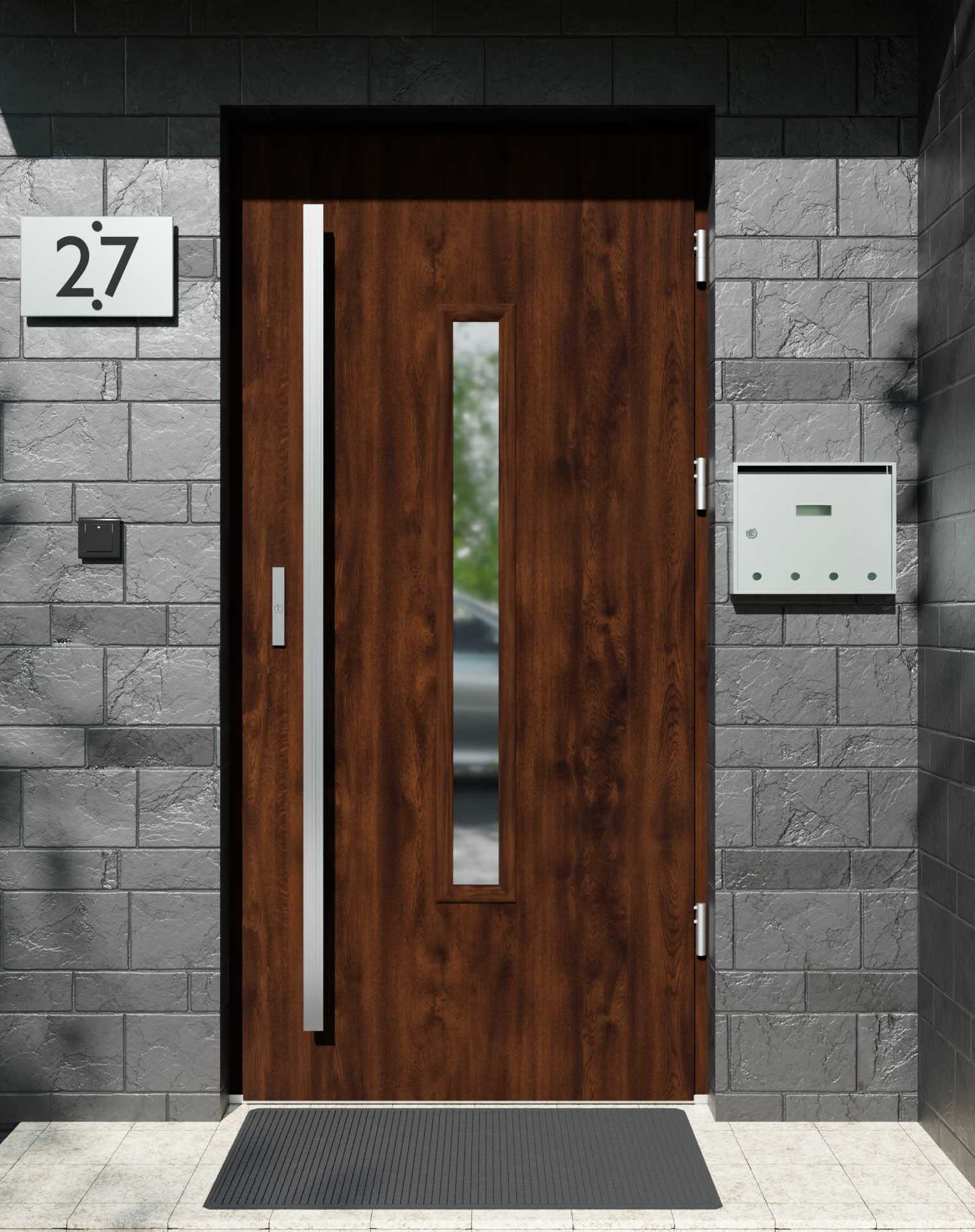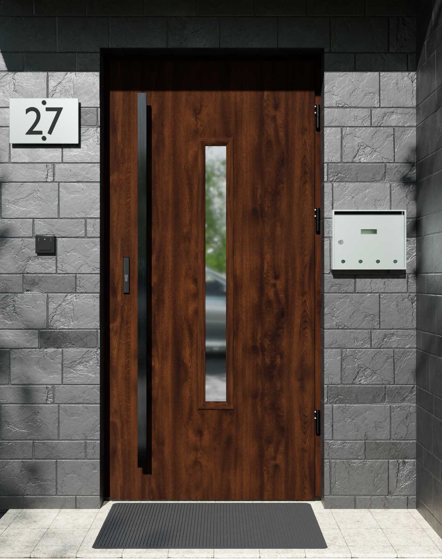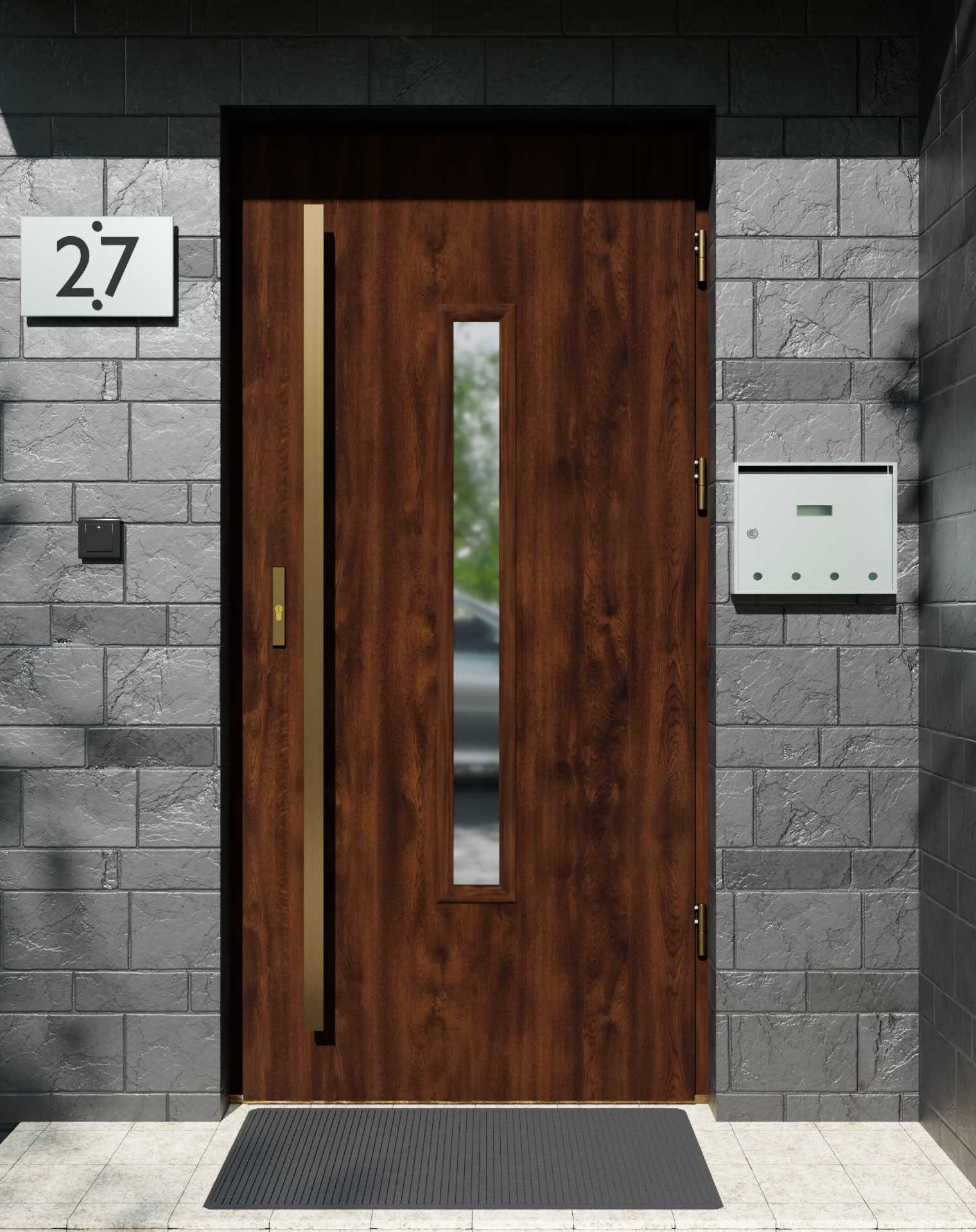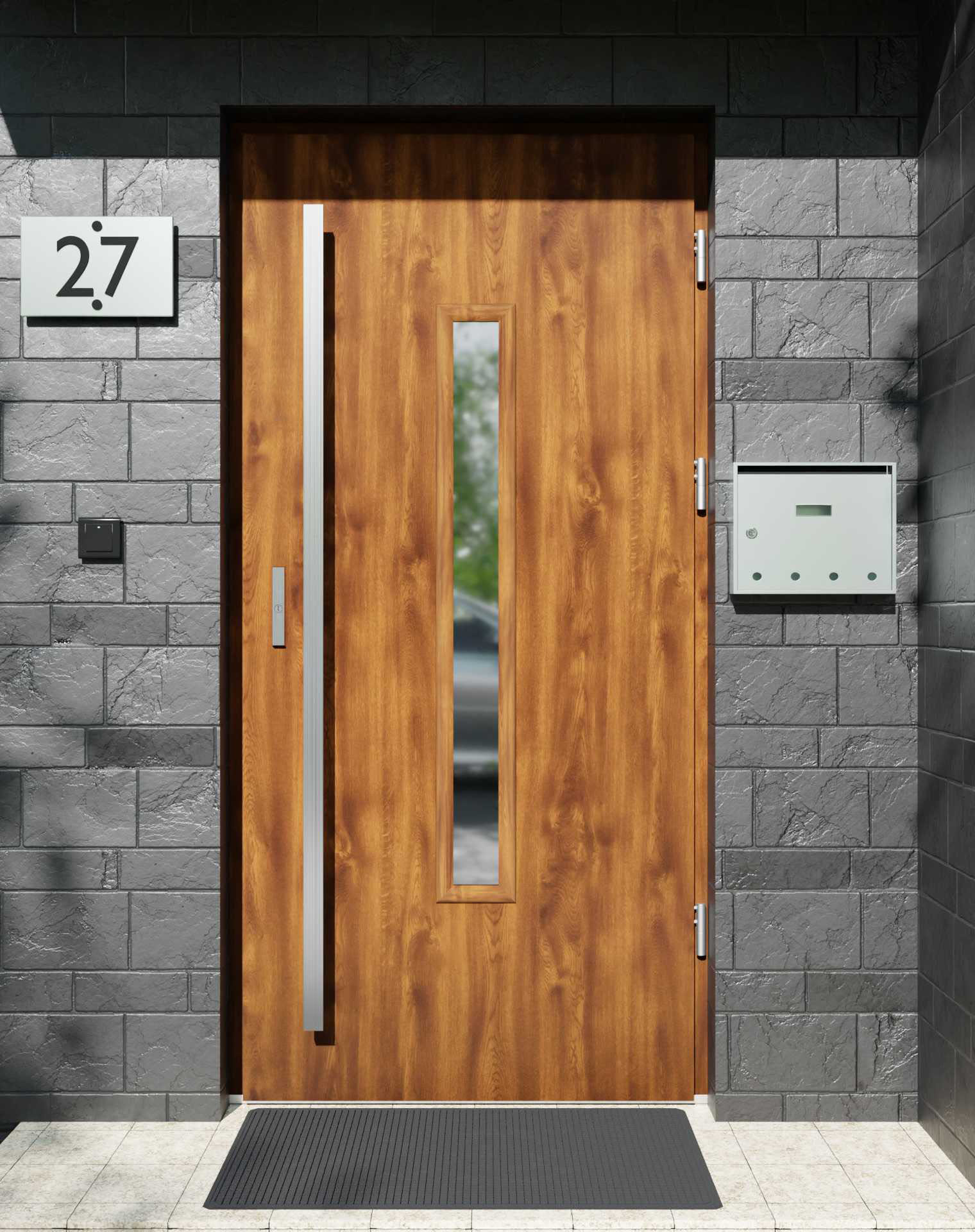 Drzwi zewnętrzne do domu z pochwytem i ościeżnicą aluminiową Otto 23 w systemie Alu