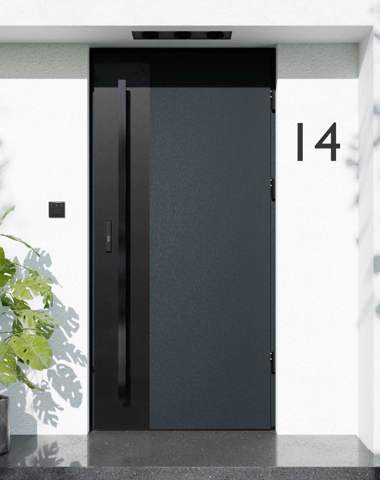 Drzwi zewnętrzne do domu z pochwytem i ościeżnicą aluminiową Otto 41 Noir Matt w systemie Alu