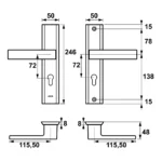 Klamka o rozstawie 72 mm. Rozstaw oznacza odległość osi klamki od osi wkładki.