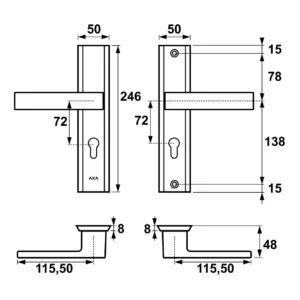 - Klamka Haga++ AXA na długim szyldzie o rozstawie 72mm (2 szt.)